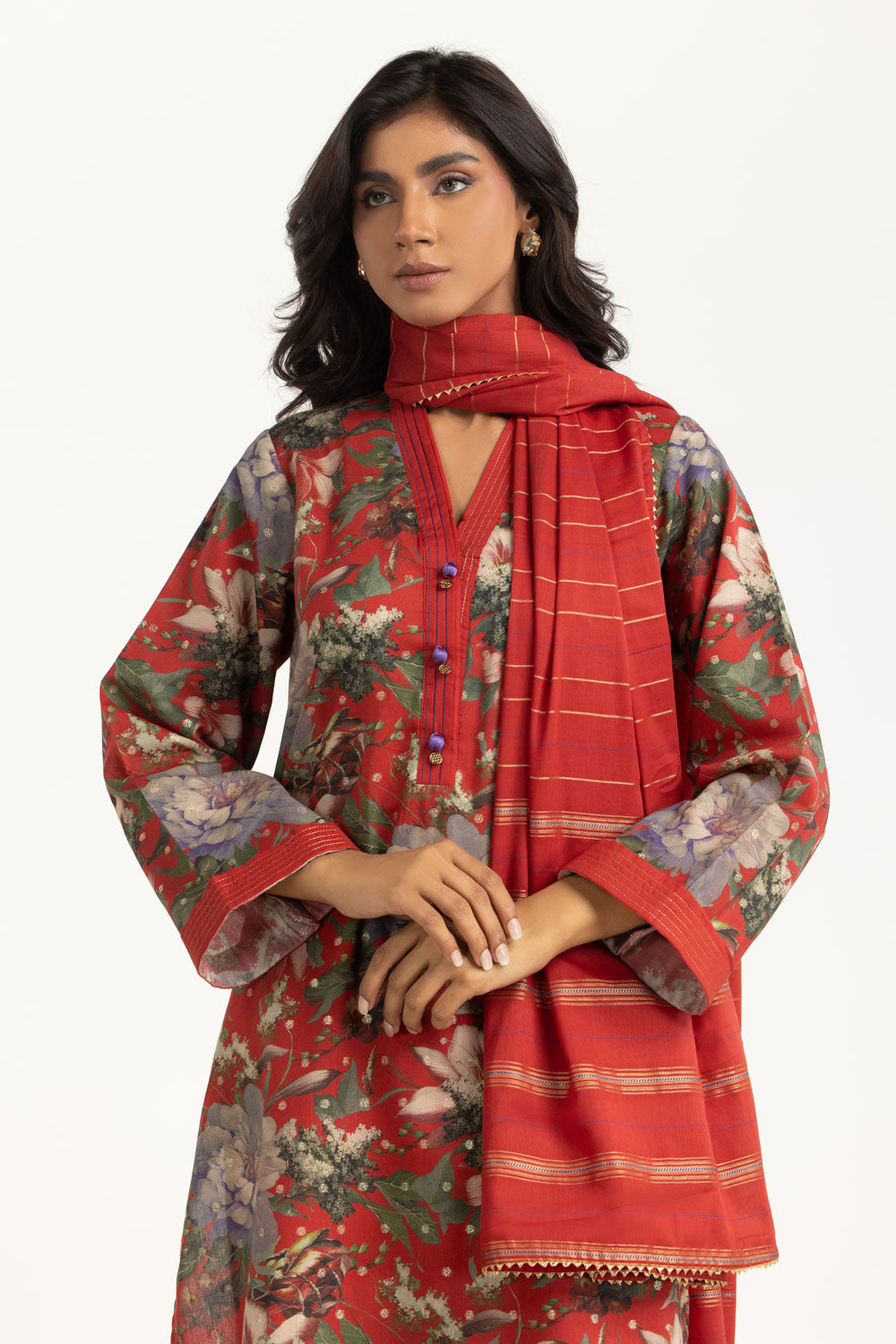 Details: Printed suit featuring a V-Neckline and delicate lace on dupatta.