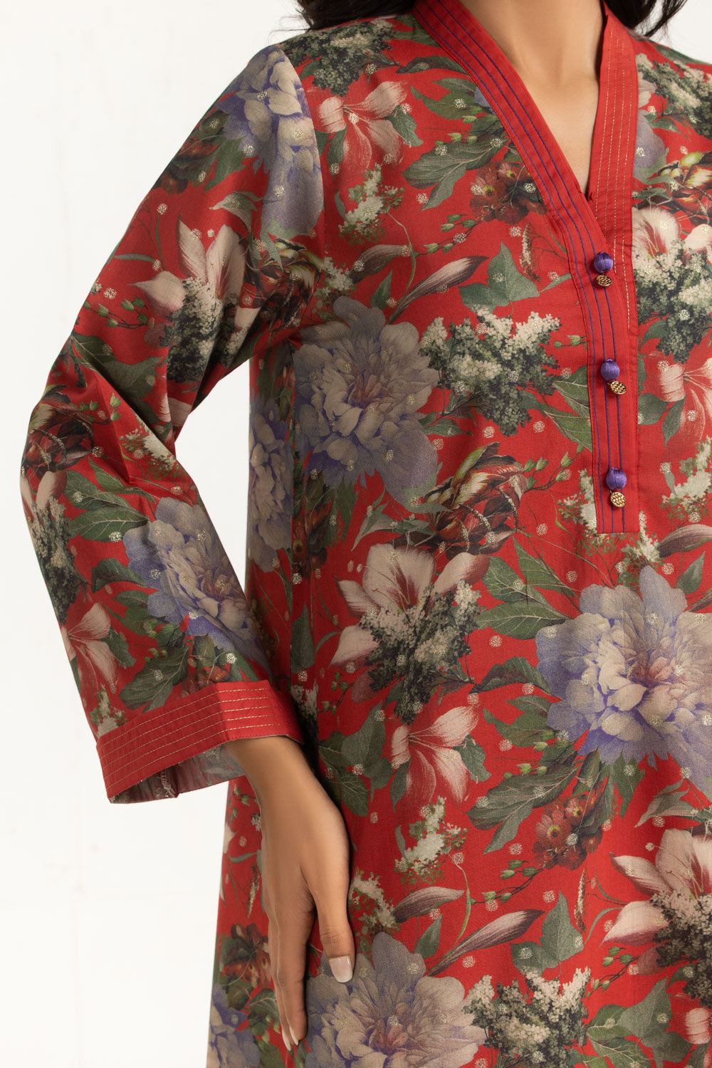 A lively floral suit in soft lurex jacquard, designed for cool comfort under the summer sun. The loose fit lets air circulate freely, making it as functional as it is stylish. Perfect for daytime gatherings where elegance meets every day ease.