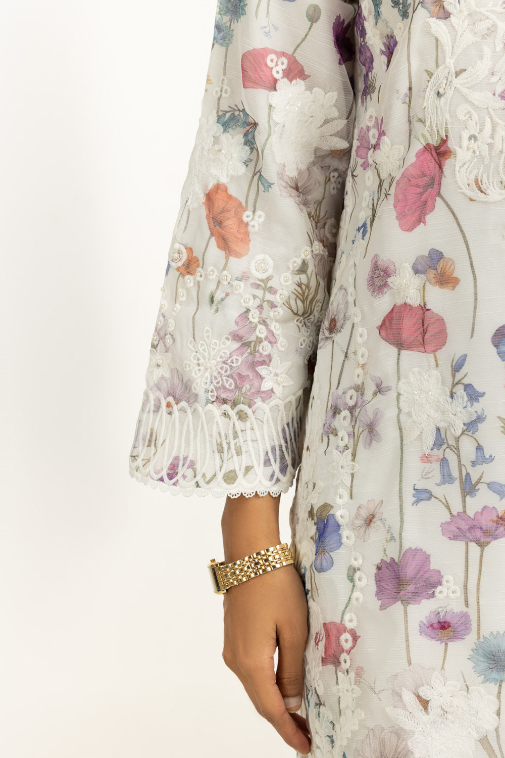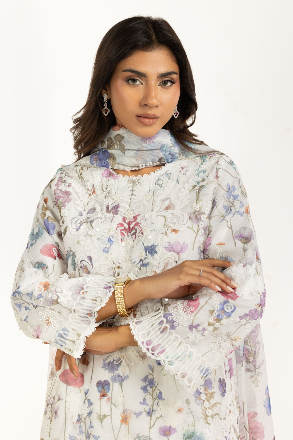 Fresh and refined, this White floral printed suit captures breezy winter elegance. The embroidery adds a delicate texture, complemented by a balanced regular fit. Ideal for daytime wear that feels pretty and practical.