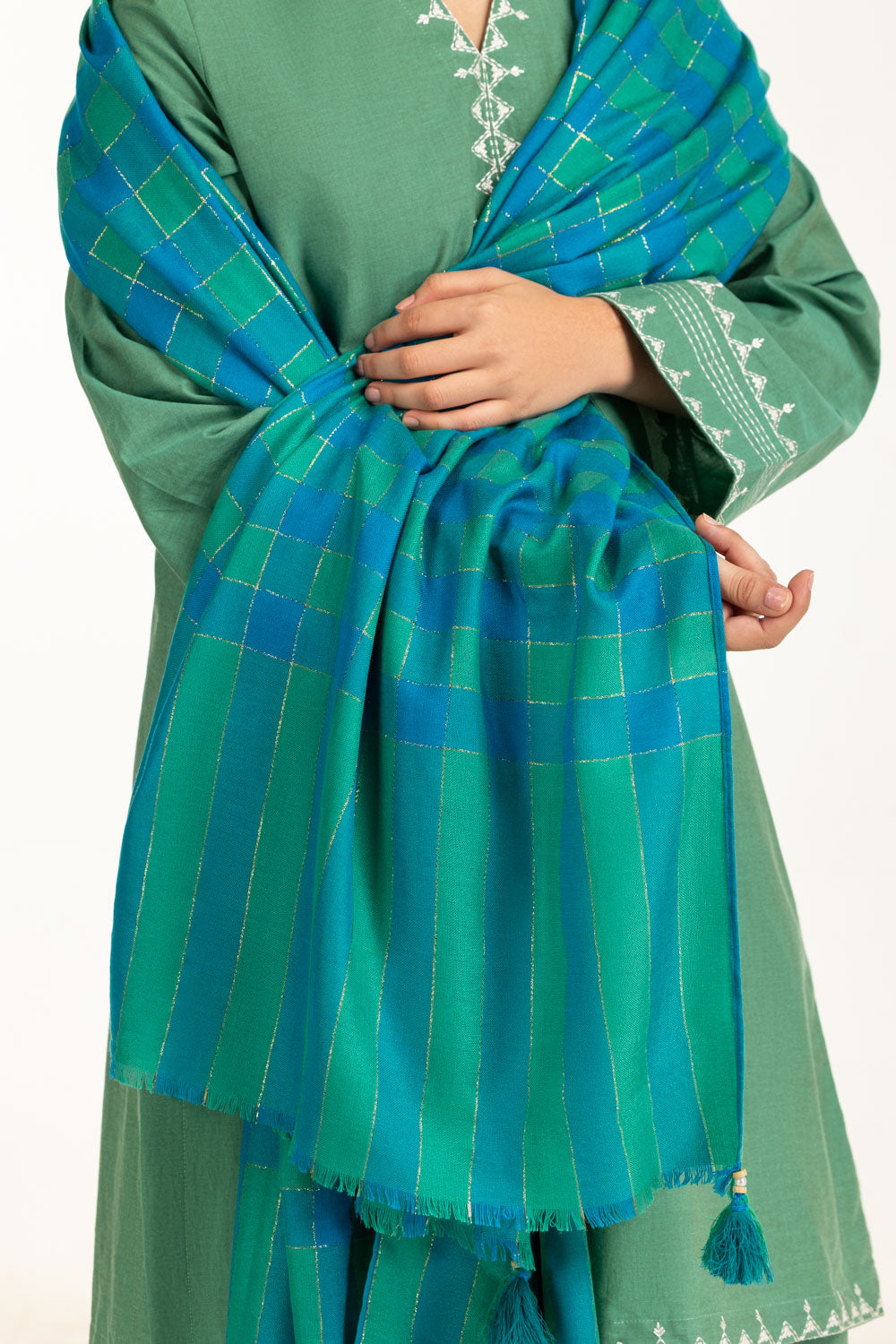 Featuring subtle checkered pattern in a rich teal color, this shawl is ideal for adding texture and contrast to your everyday winter wardrobe. Soft and warm, it transitions from day time meetups to night outings effortlessly.