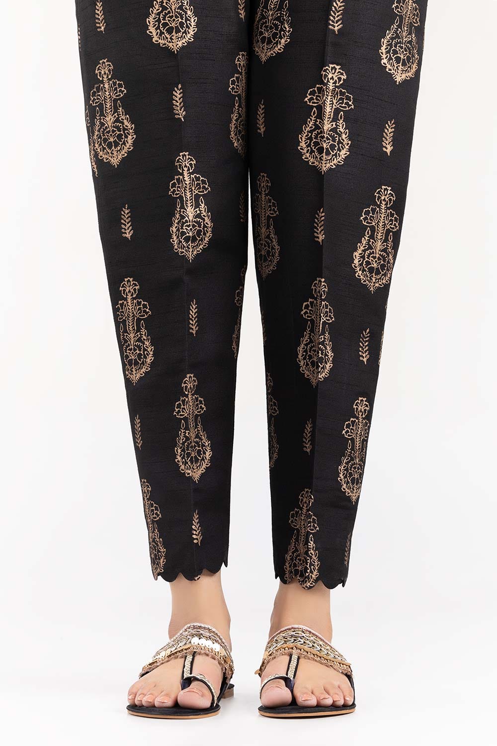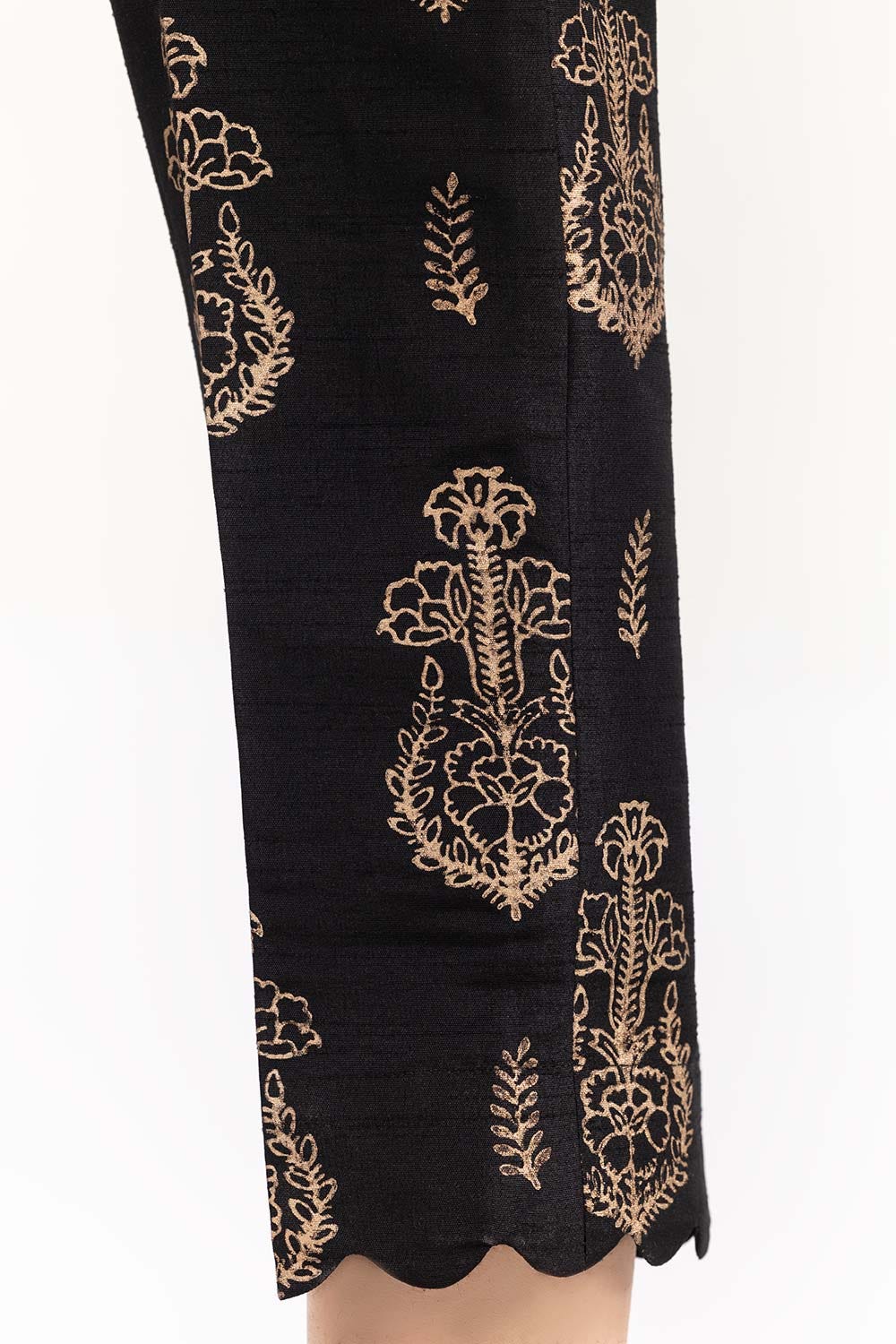 Black Screen Printed Raw Silk Pants TR-21-163