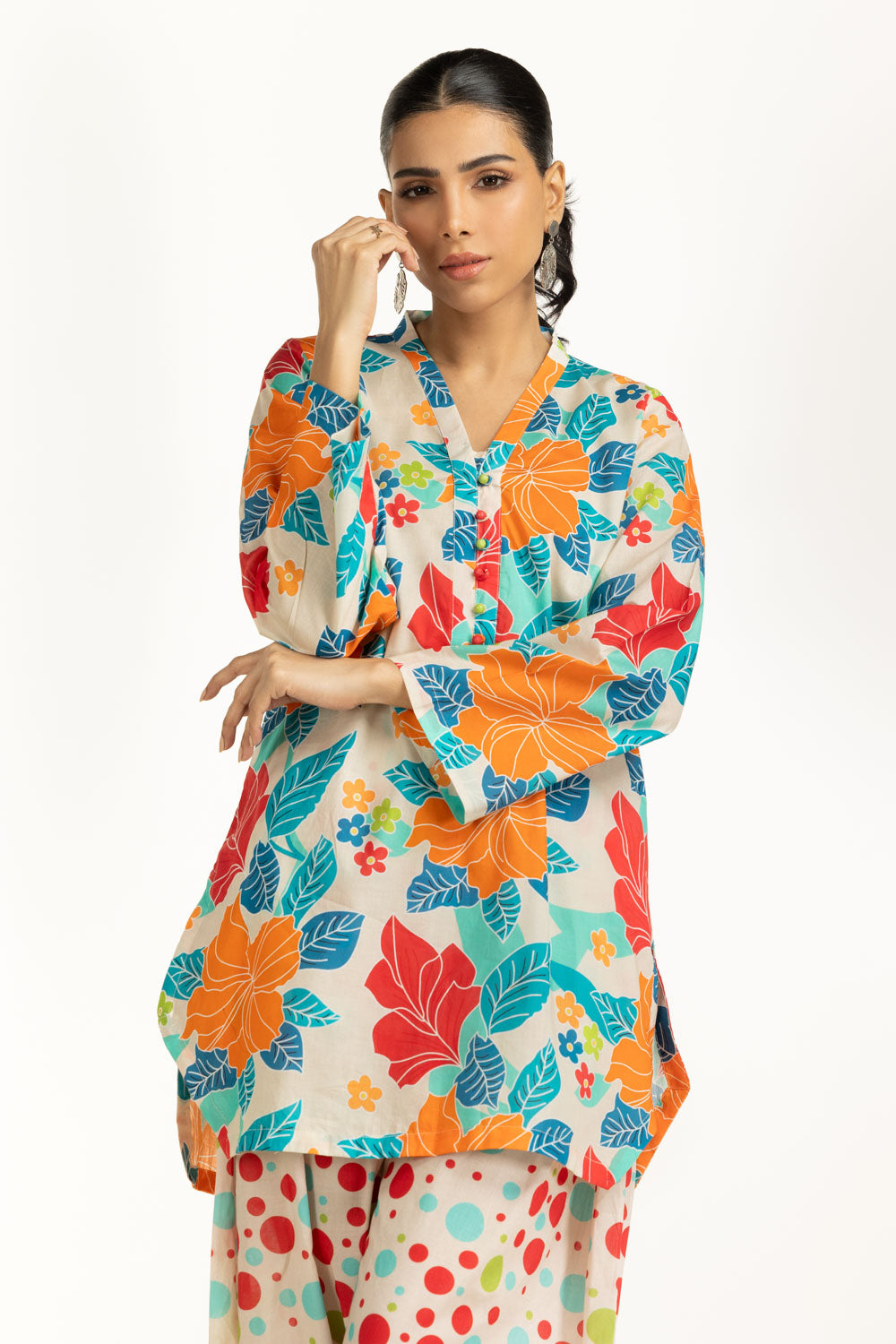 Details: Printed Co-ord set featuring a V-Neckline.