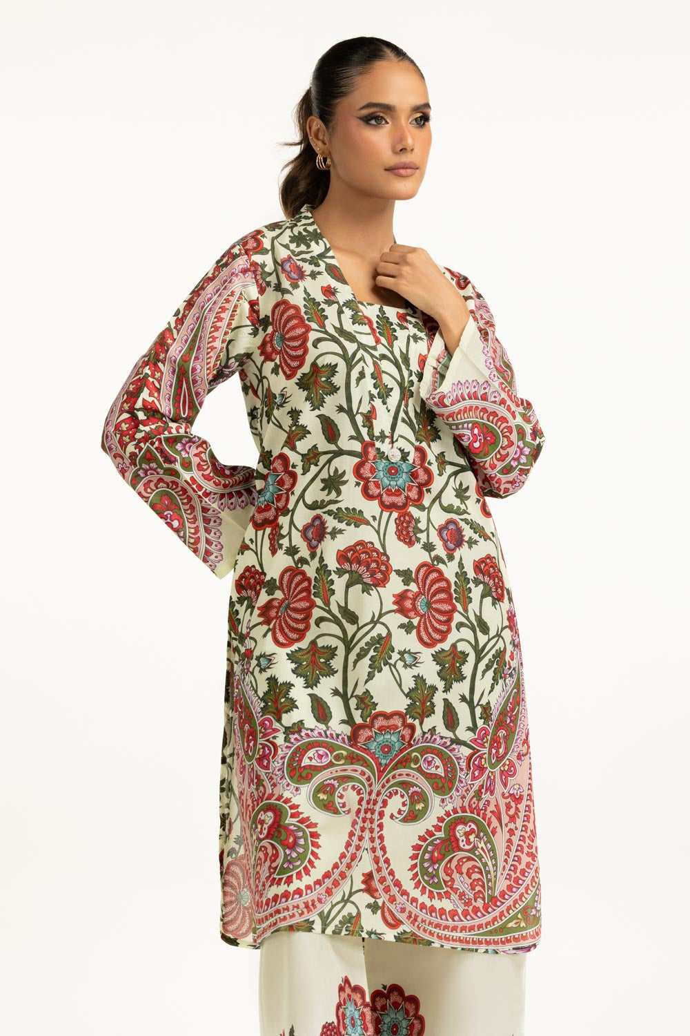 This co-ord set in breezy camric is detailed with a soft floral print, reflects effortless style for warm summer days. The regular fit ensures a relaxed yet polished look, keeping comfort at its core. A timeless piece for modern women who value light, breezy fashion.