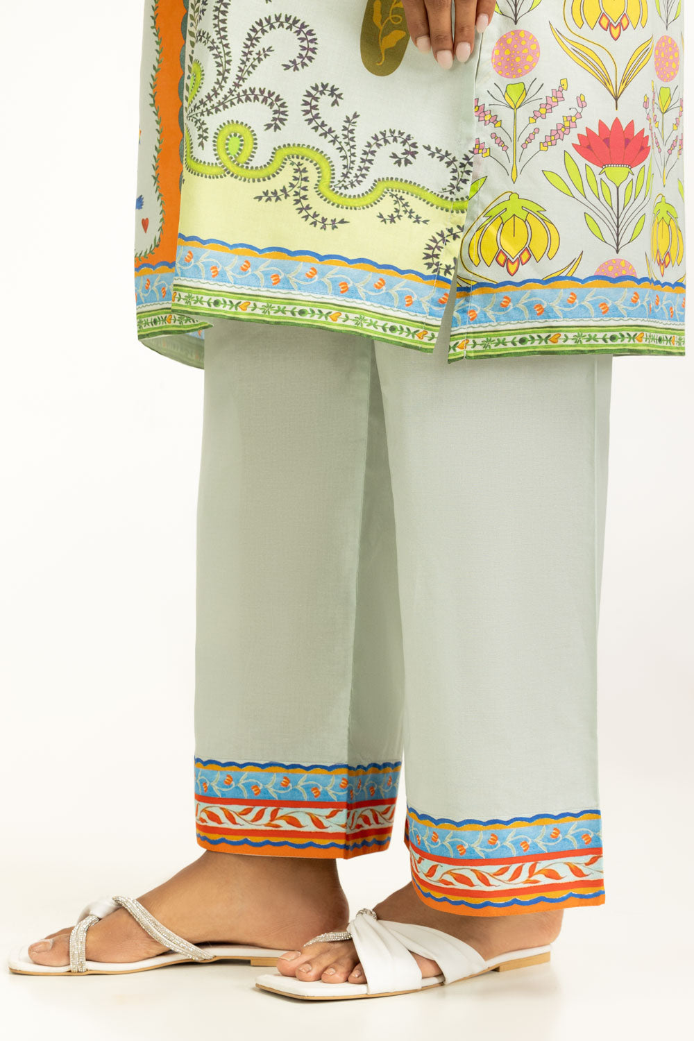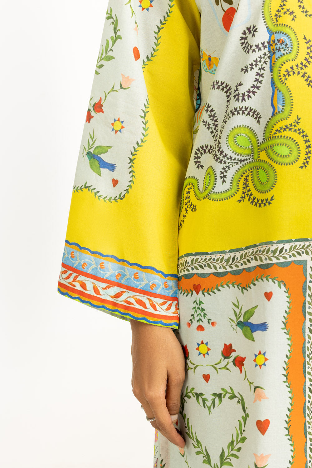 This relaxed cut co-ord set features vibrant florals and delicate motifs on an off-white base, highlighted with a pop of color. Keeping the neckline simple yet contemporary to make you look chic wherever you go.