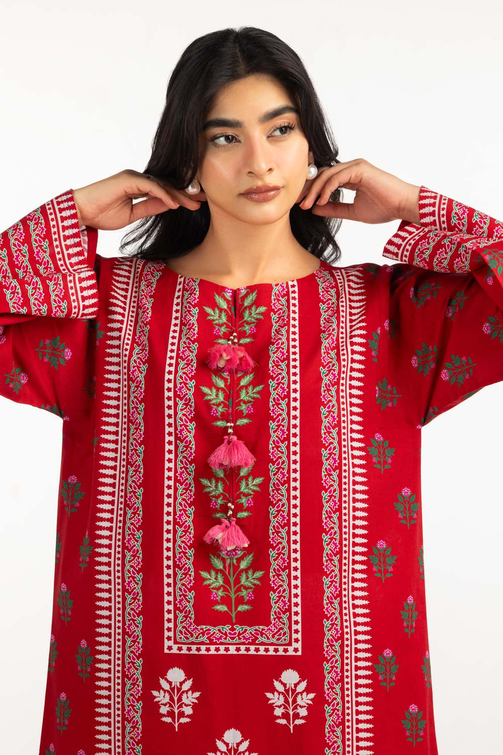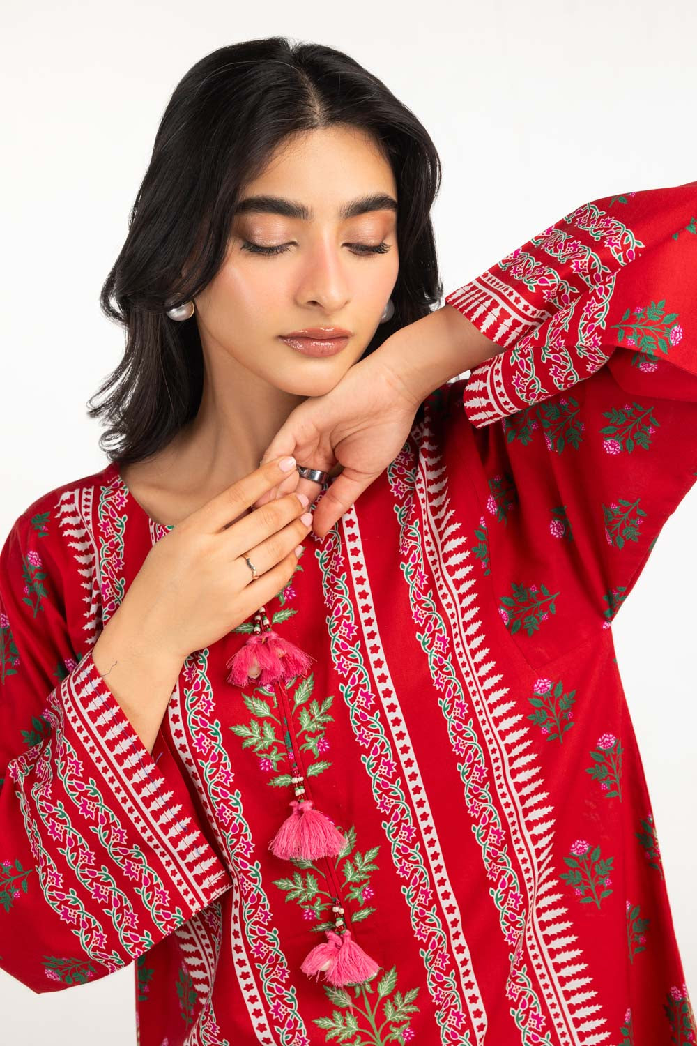 Details: Printed co-ord set featuring round-neckline with delicate tassels and embroidered trouser.