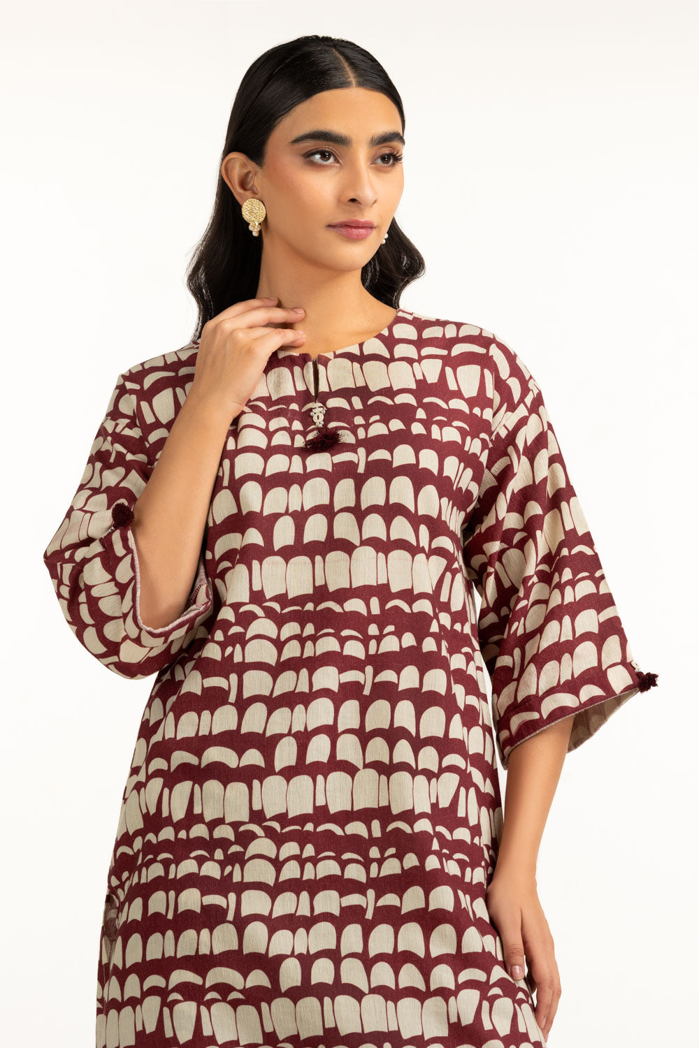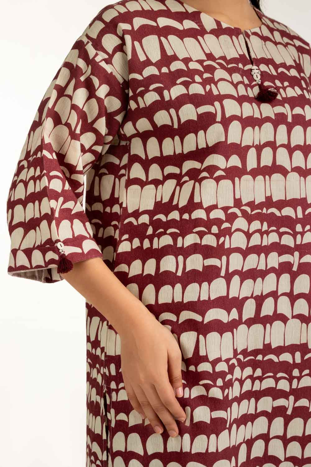 Details: Printed Co-ord Set featuring a Round-Neckline with delicate Tassels.