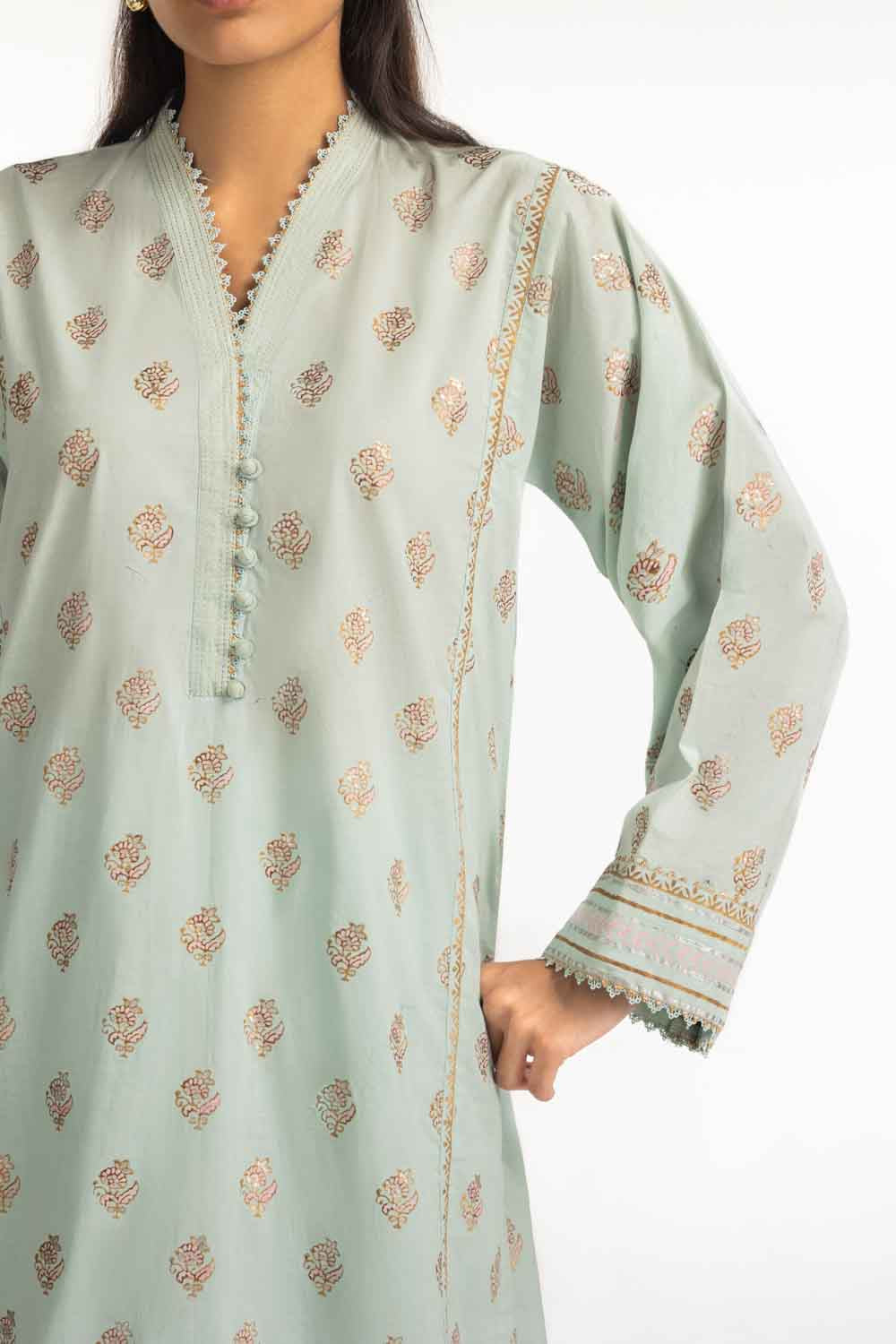 Featuring timeless block print artistry, this cross hatch co-ord set blends traditional detailing with a clean regular fit silhouette. The soothing sea green tone keeps the look fresh and breathable for summer while maintaining a stylish ethnic appeal. It comes with a plain dyed trouser, making it suitable for casual wear, lunch outings, and intimate gatherings.
