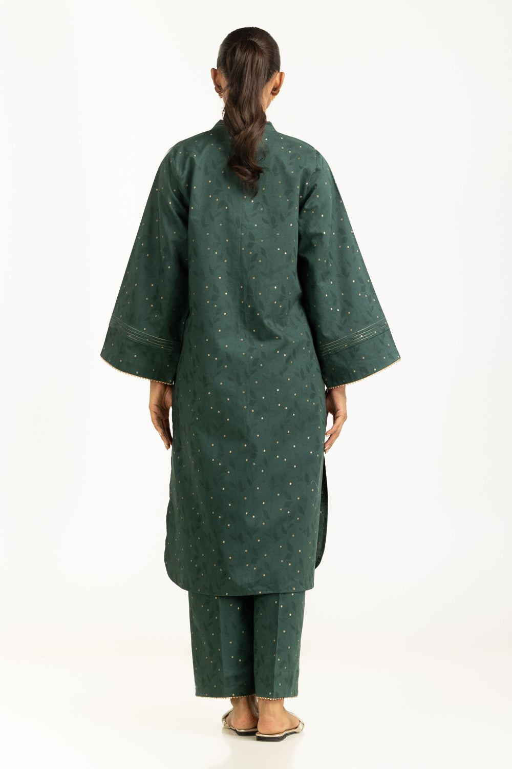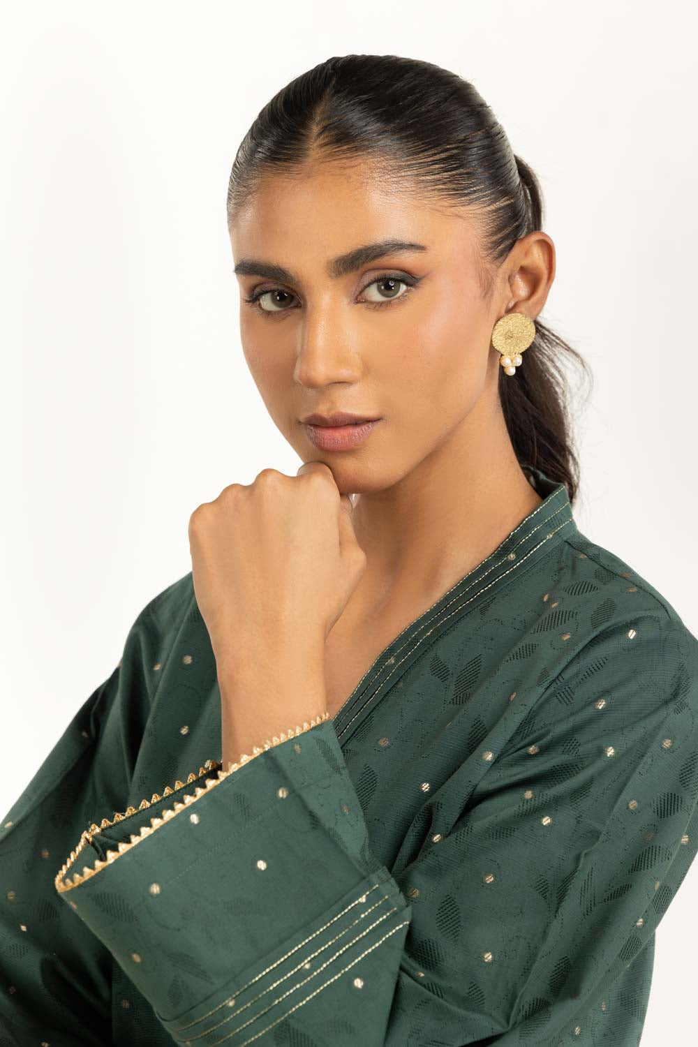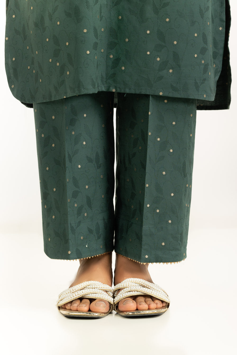 Enjoy the warmth of this Denier Jacquard Co-ord set, featuring a sophisticated bottle green color and a comfortable regular fit. The fabric's inherent texture adds a subtle, feminine touch to this contemporary winter staple. It's a functional and breezy option for maintaining style and comfort all day.