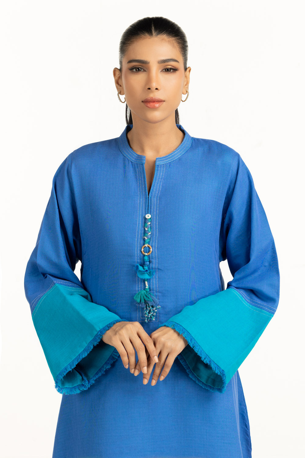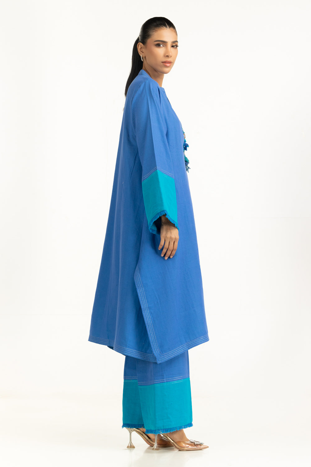 Details: Embroidered Co-ord set featuring Ben-Collar with Tassels.