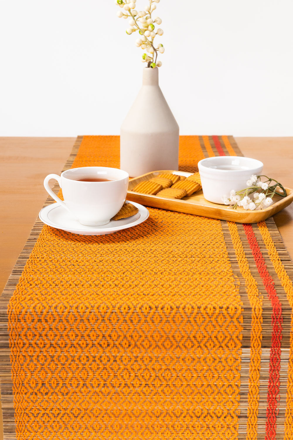 Add a touch of sustainable style to your dining setup with the Sanober Table Runner. this handwoven runner brings warmth and serenity to every meal.
