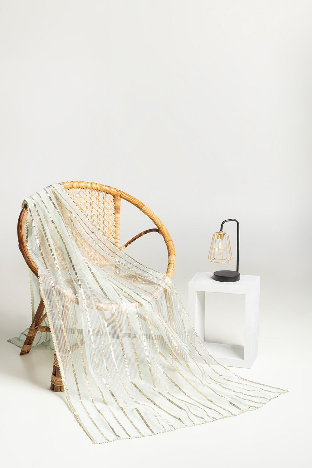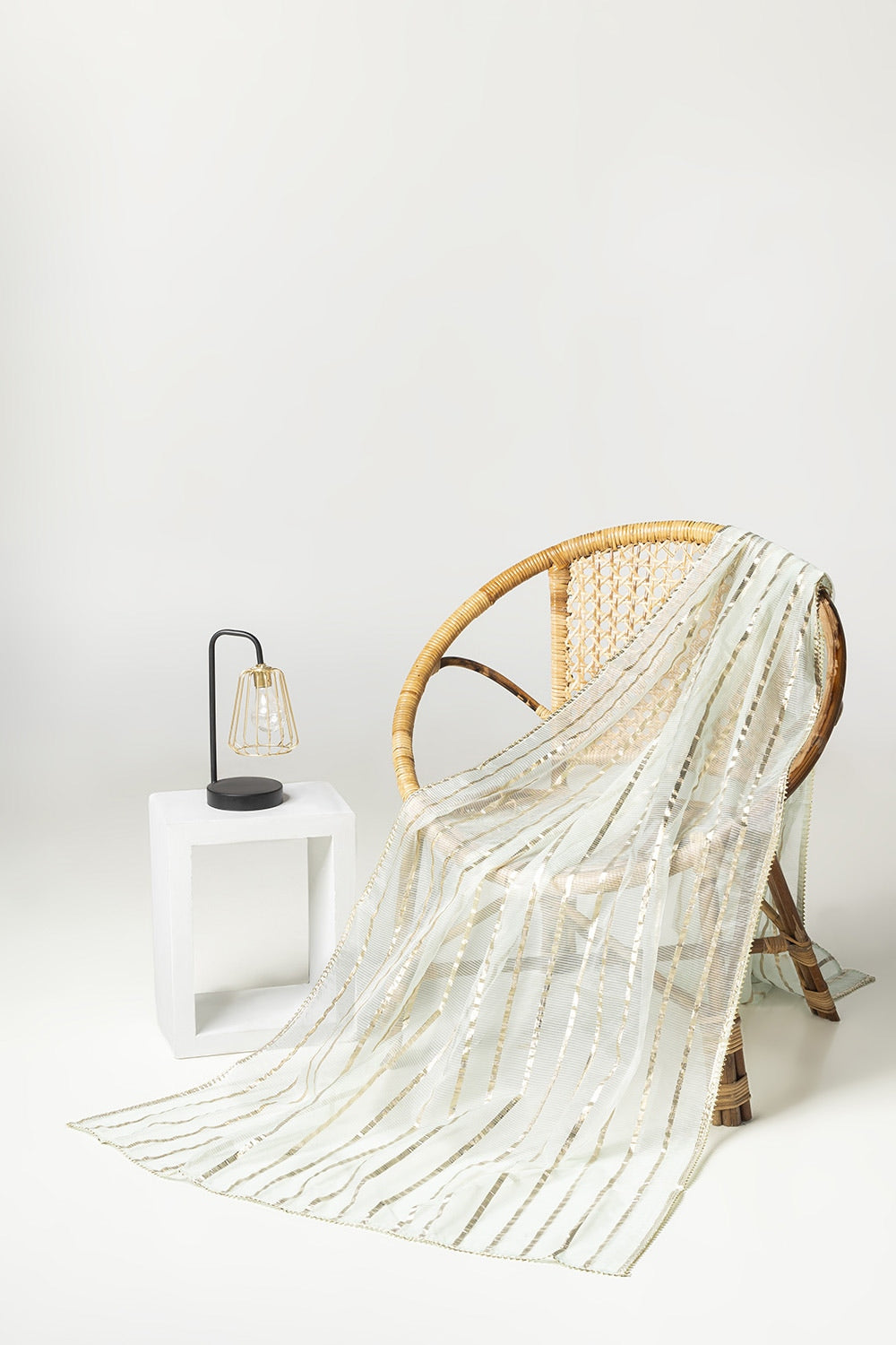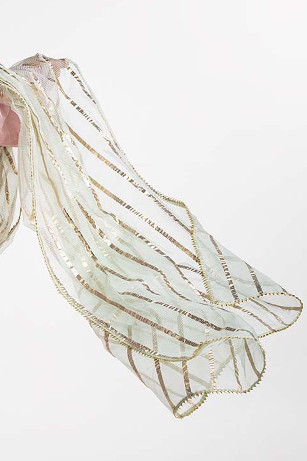 Ready to wear Complete your ensemble with this exquisite light green dupatta, adorned with gold stripes and intricate detailing along the edges. The lightweight fabric and luxurious design add a touch of sophistication, making it an ideal accessory for any outfit.