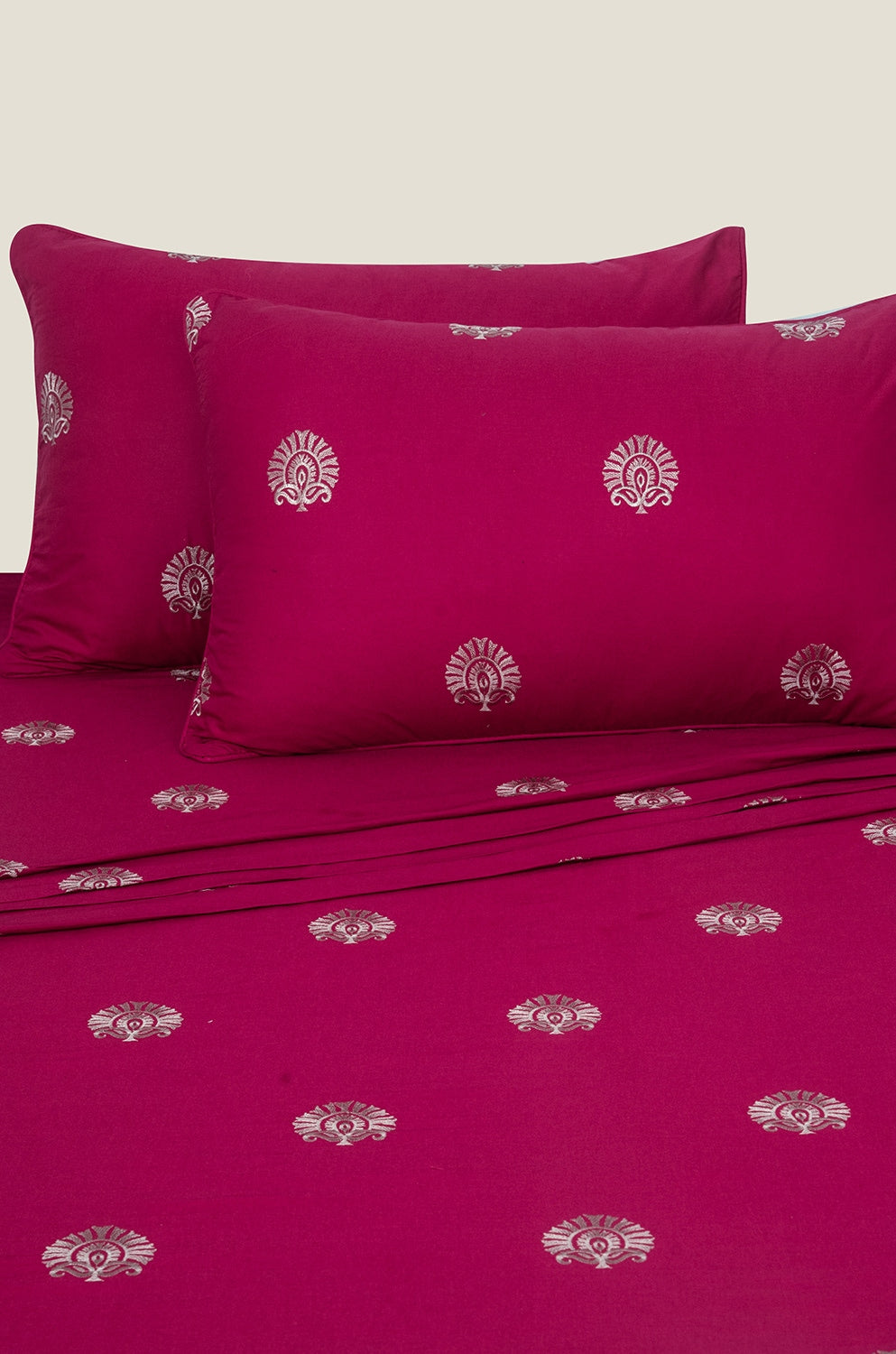 Ethnic Dyed Embroidered T-150 Bed Sheet Set