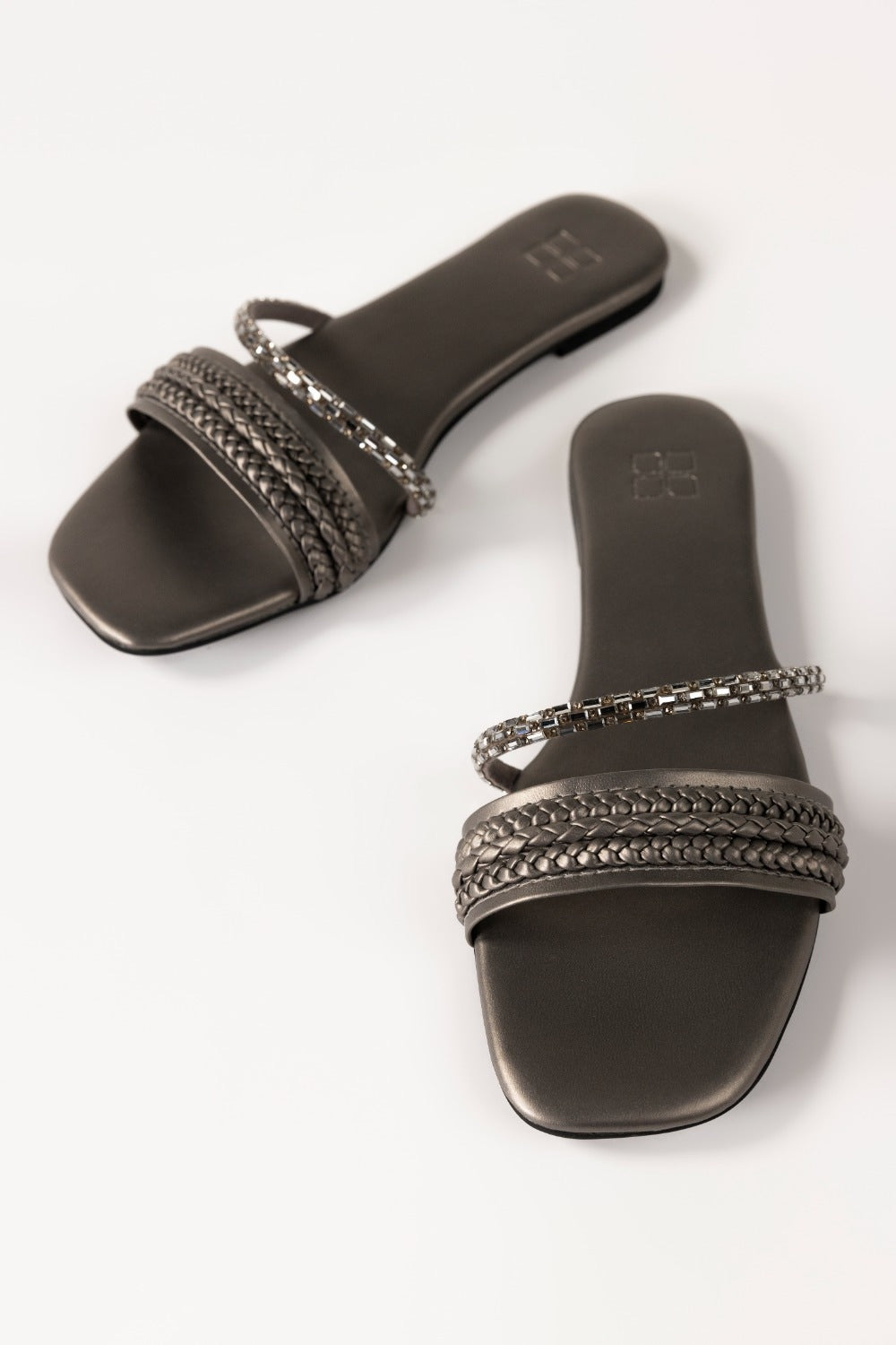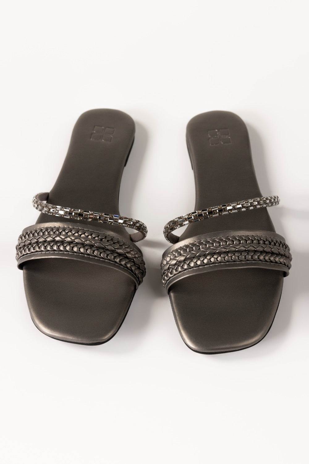 Glam up your weekends with these slides. Featuring a Maroon color that will bring a smile to your face, these shoes are perfect for boosting your style. The asymmetric embellished straps will have you reaching for these flats for every occasion.