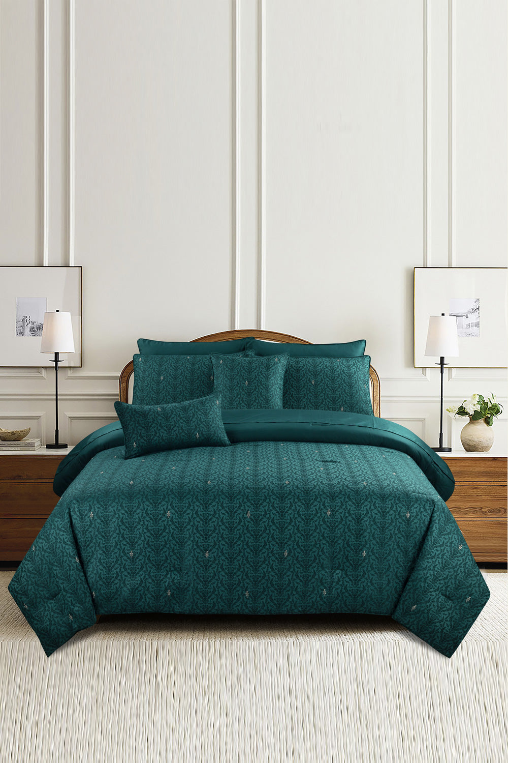 The Embroidered Jacquard Comforter Set is a timeless collection. The Fabric has greater durability & Smoothness. The Embroidered Comforter and Dyed Sheet leaves caressing sense of finesse with superb finishing & spectacular texture. It’s an ultra-luxury product.