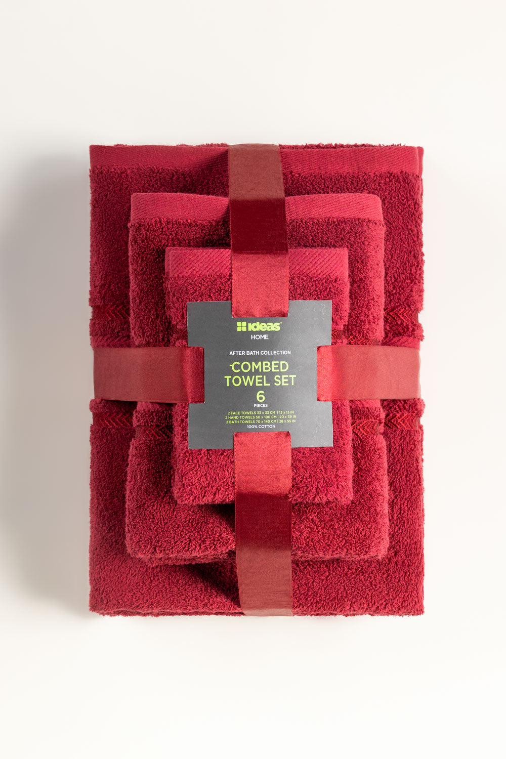 Set consist of 2 face towels, 2 hand towels and 2 bath towels in a beautiful packaging.