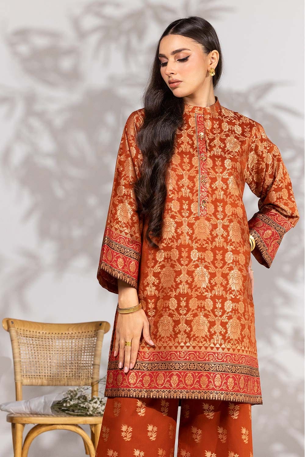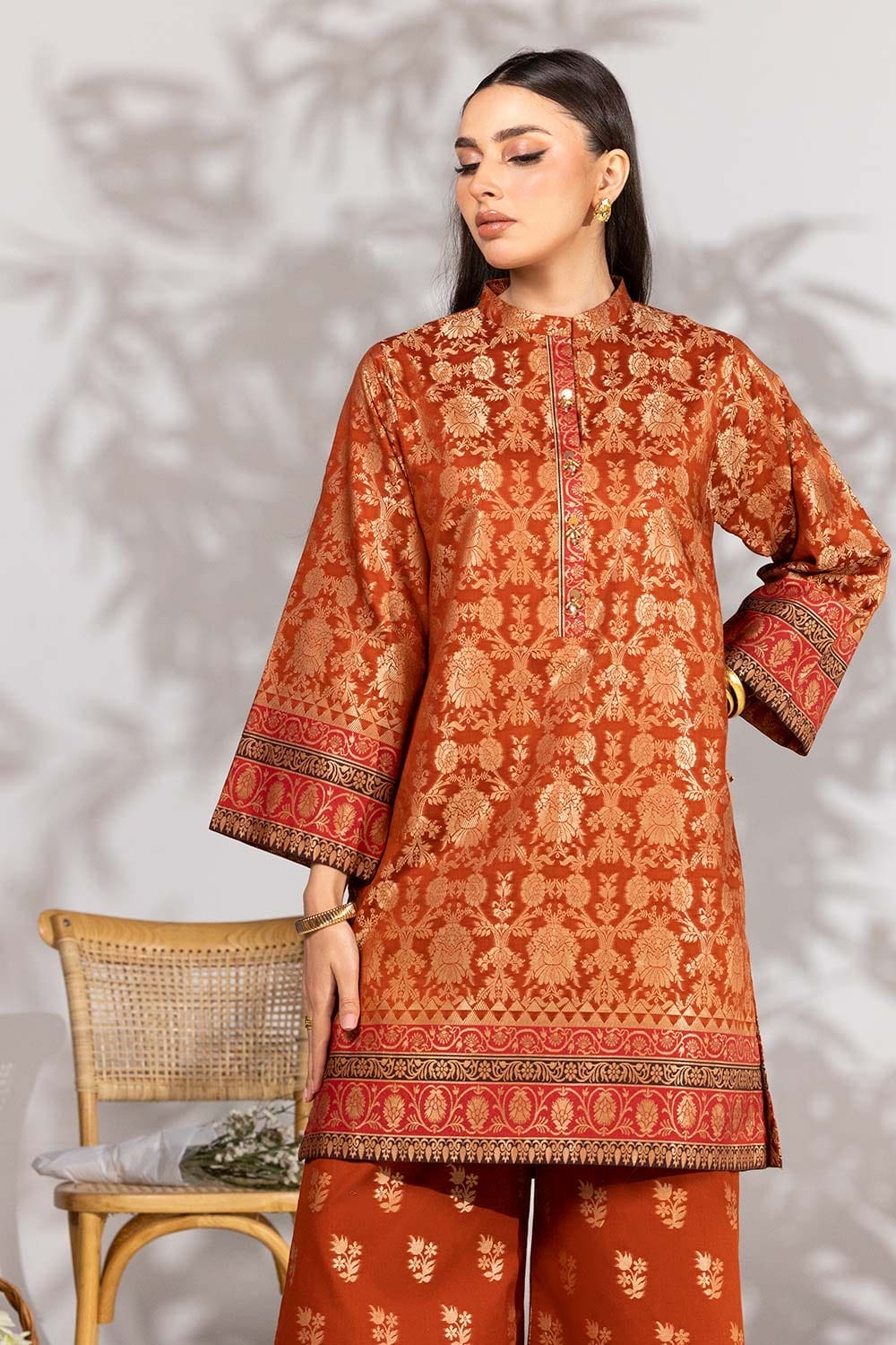 Ready to wear Jacquard dyed shirt and wide leg trouser with neck handwork