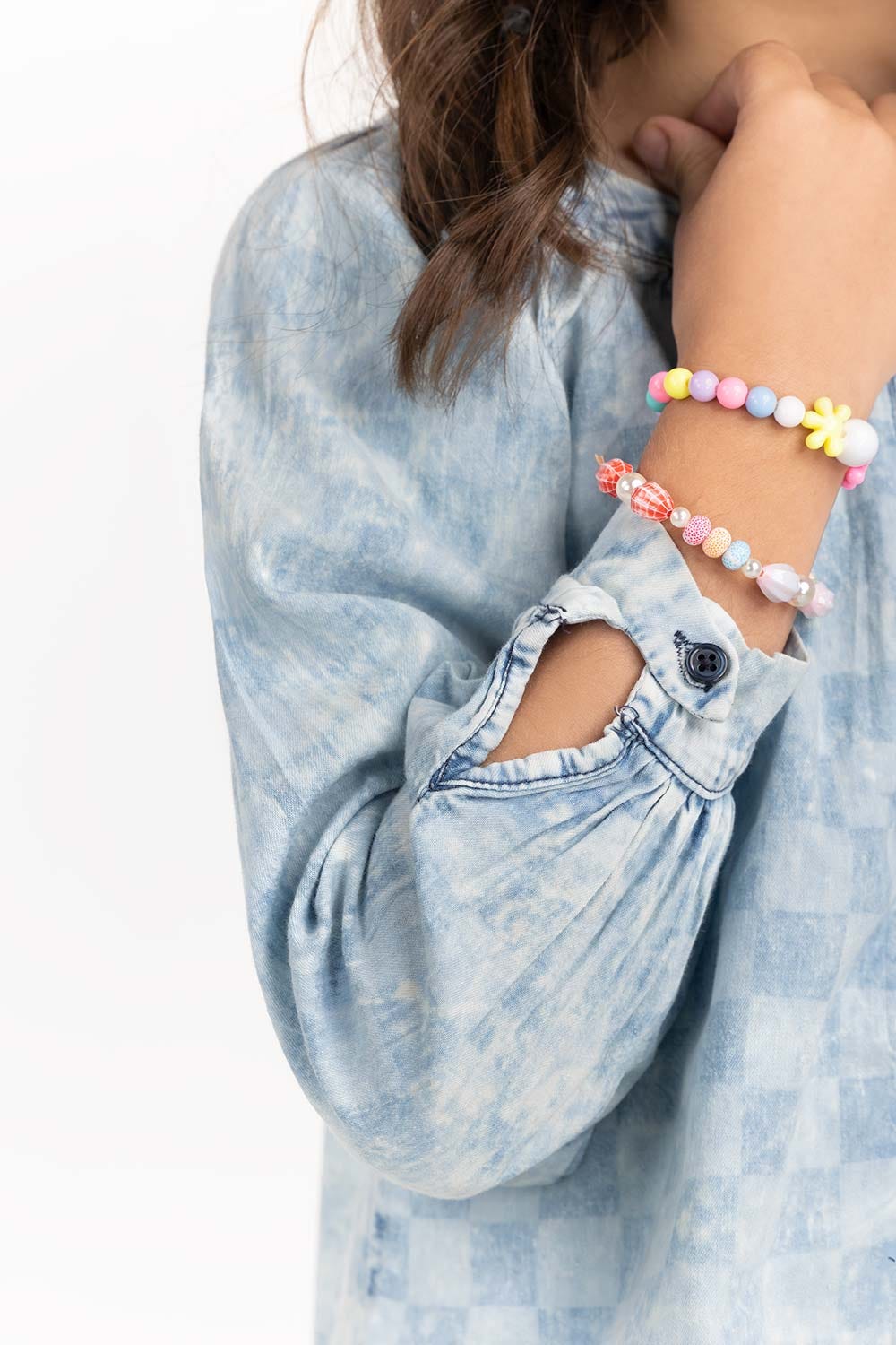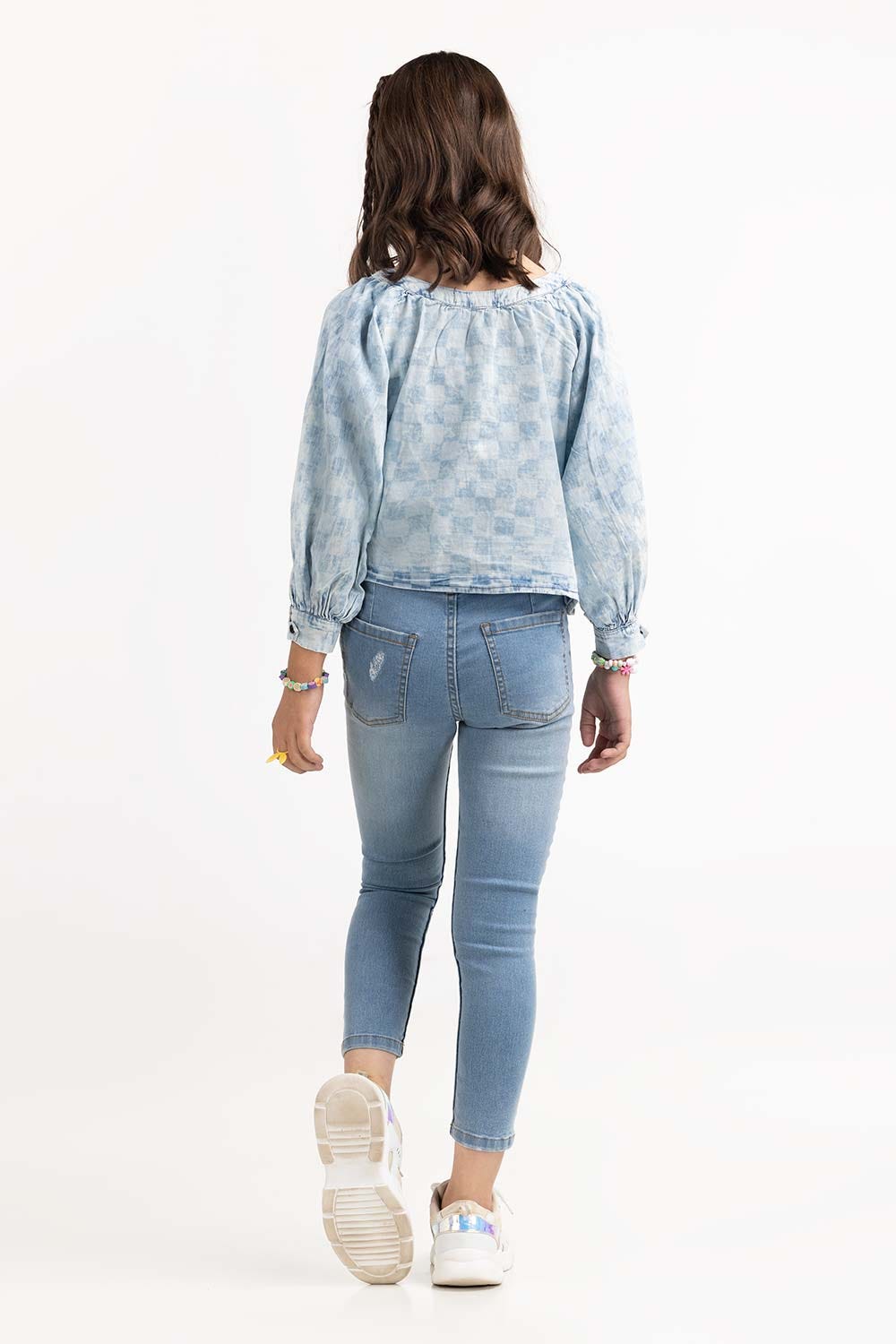 Button-Down Blouse With Discharge Print. Round Neck And Cuff At Sleeve Opening.