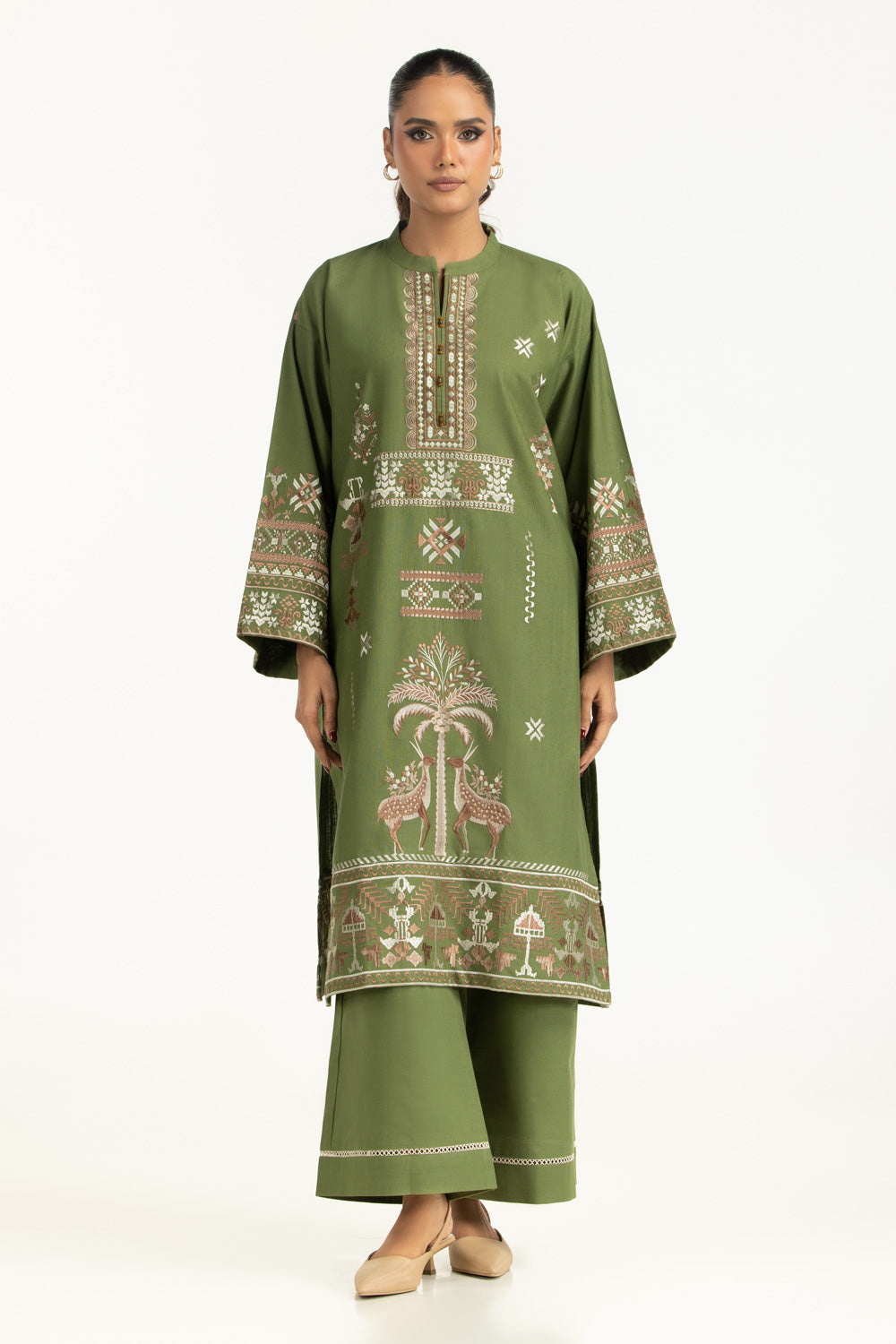 This detailed embroidered co-ord in an earthy green color, has a fresh take on casual winter styling. Designed for effortless dressing, it combines cozy warmth with refined details. While the relaxed silhouette makes it a go-to for all-day winter comfort.