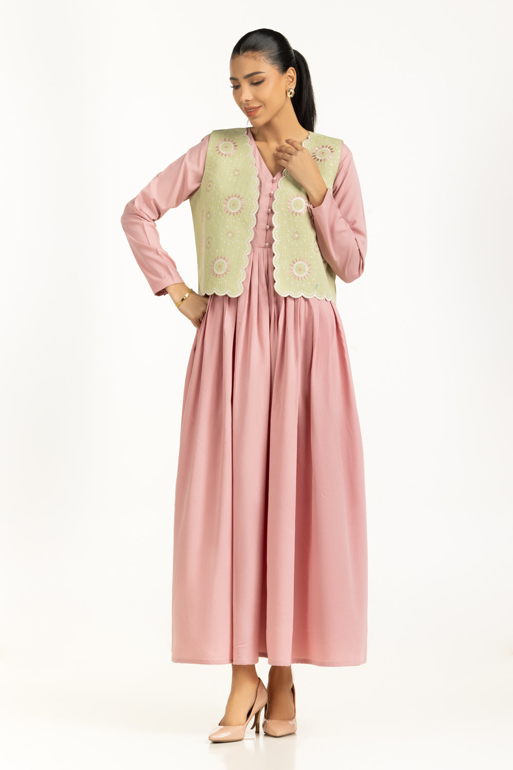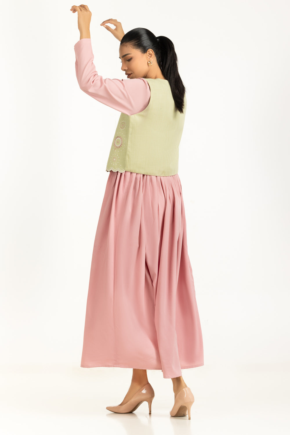 This embroidered waistcoat in a light green hue, tailored in khaddar fabric, brings a fresh twist to winter layering. Its soft feel and regular fit offer all-day comfort, while the delicate embroidery adds a gentle handcrafted appeal. Perfect for relaxed, refined dressing.
