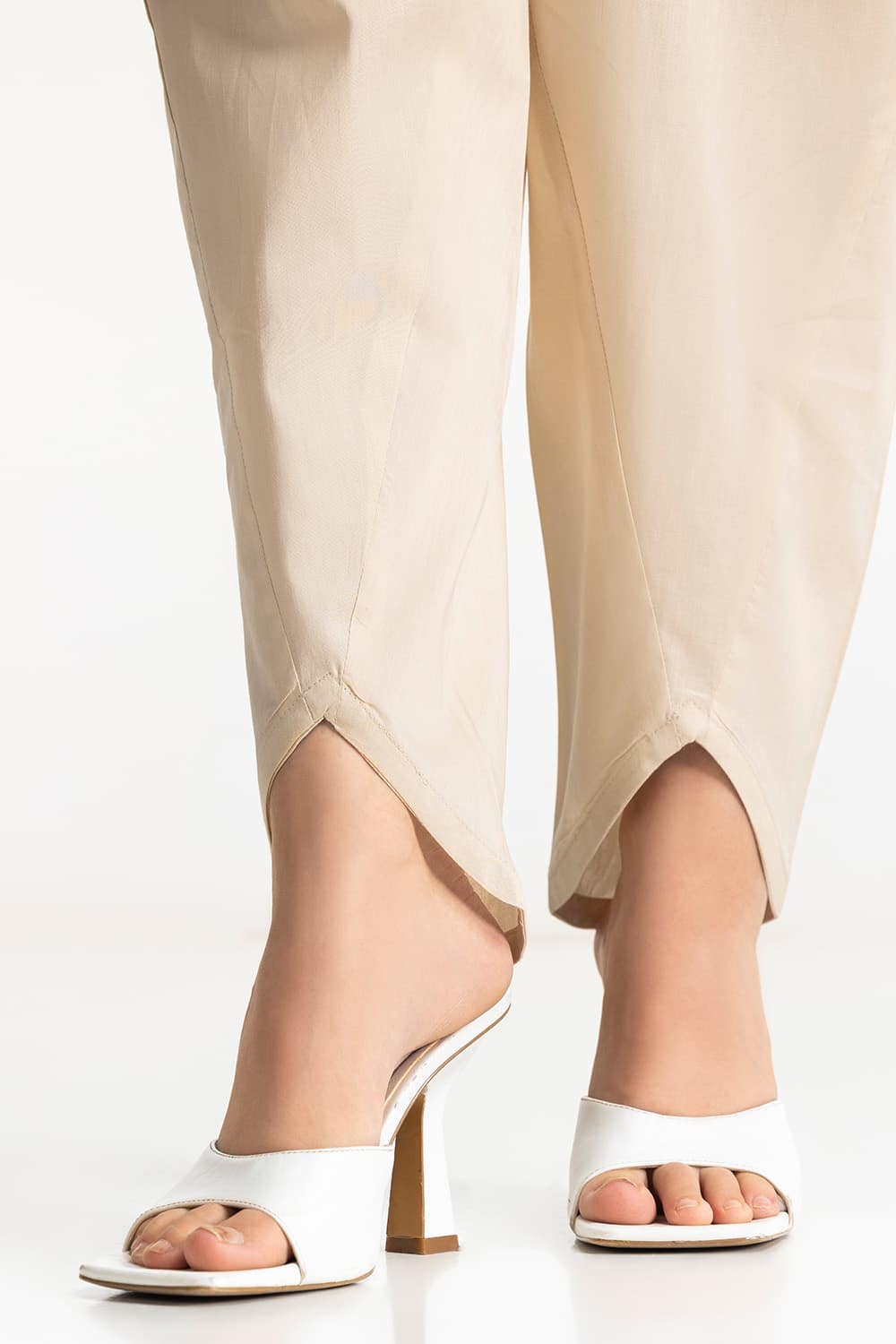 Ready to wear These beige tulip pants offer a contemporary twist with their unique cut and hem design. Perfect for adding a stylish edge to your traditional outfits, they are both chic and comfortable.