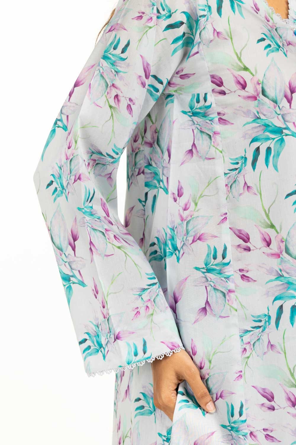 A carefree silhouette, drenched in floral vibrance, tailored from breathable lawn. The loose fit co-ord set drapes effortlessly, making it perfect for warm afternoons. Bold yet feminine, it balances casual comfort with a sense of quiet sophistication.