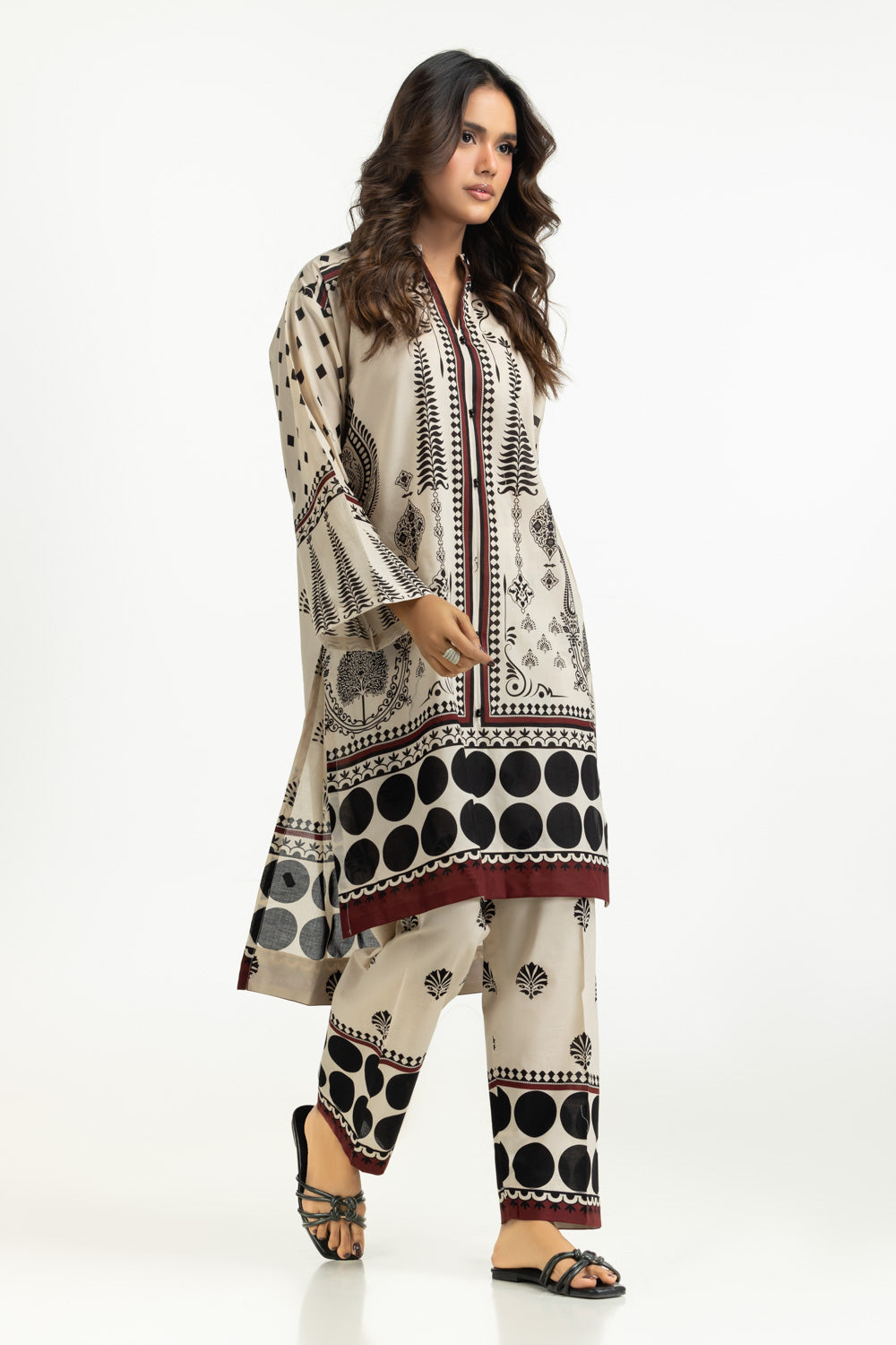Contemporary print layered with subtle polka dots, give this co-ord set a playful yet composed look. Breathable lawn fabric keeps the outfit comfortable during long summer hours. While the loose fit supports ease of movement for casual gatherings.