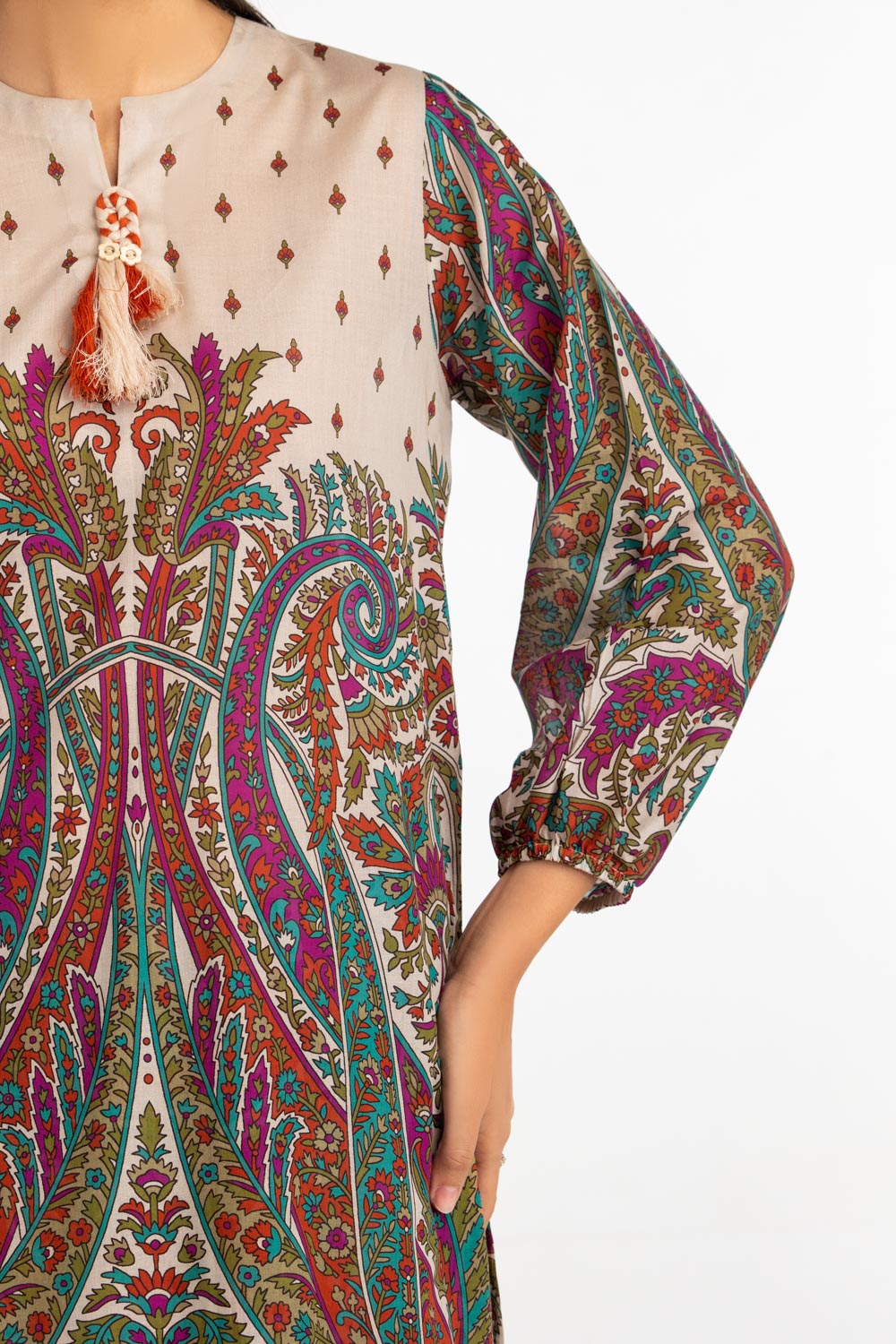 Details: Printed co-ord set featuring a round-spit-neckline, delicate tassels and balloon sleeves.