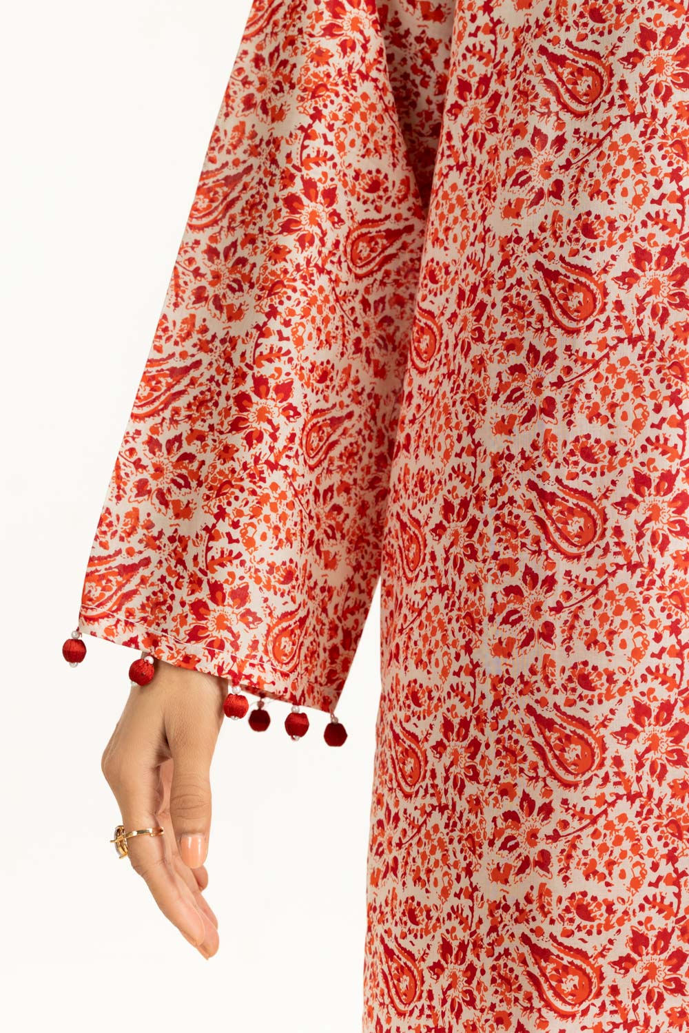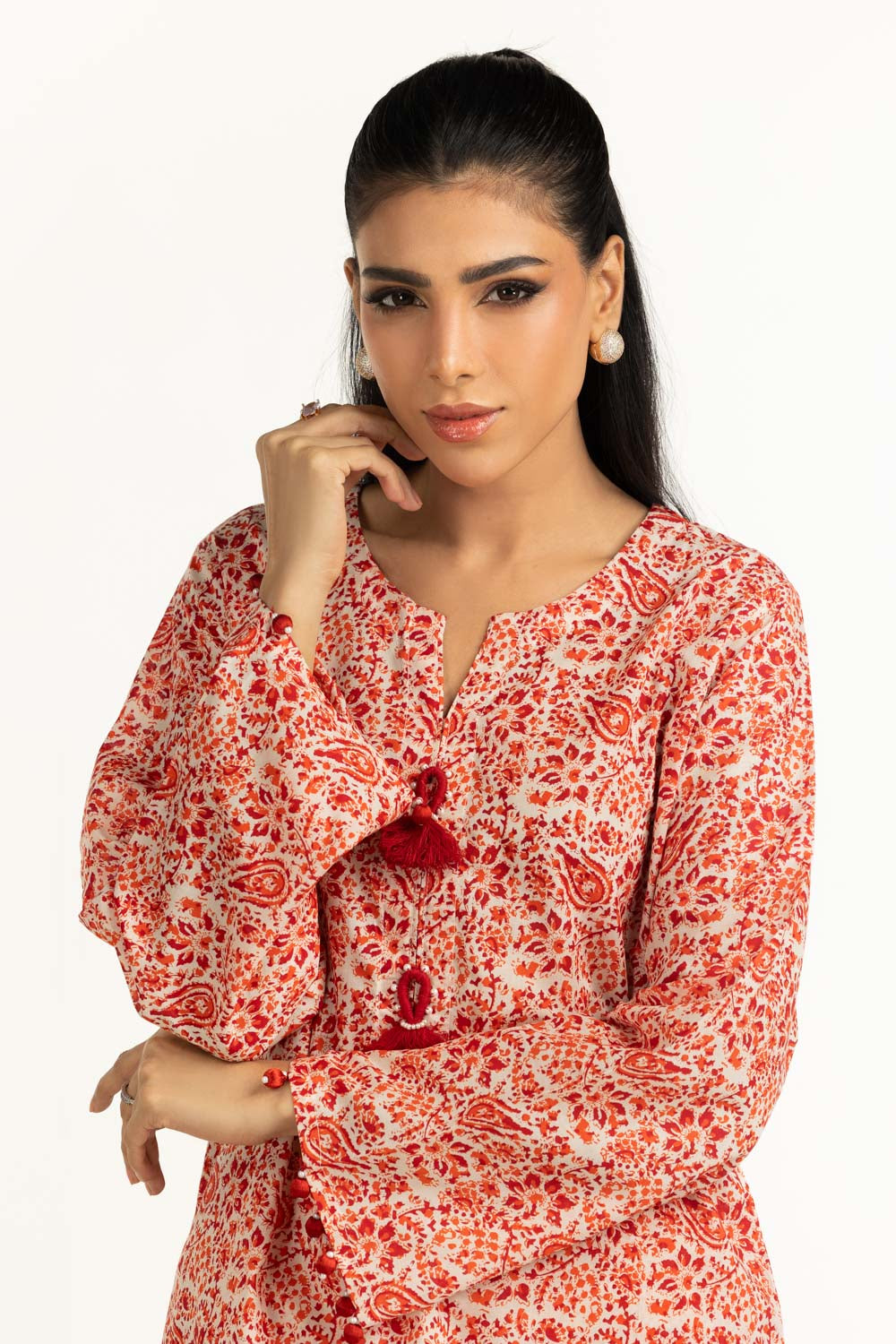 A vibrant orange print brings energy to summer dressing while remaining practical. The breathable lawn fabric helps regulate comfort in warm conditions, making it suitable for everyday wear. While the loose fit allows the outfit to move easily during casual gatherings.