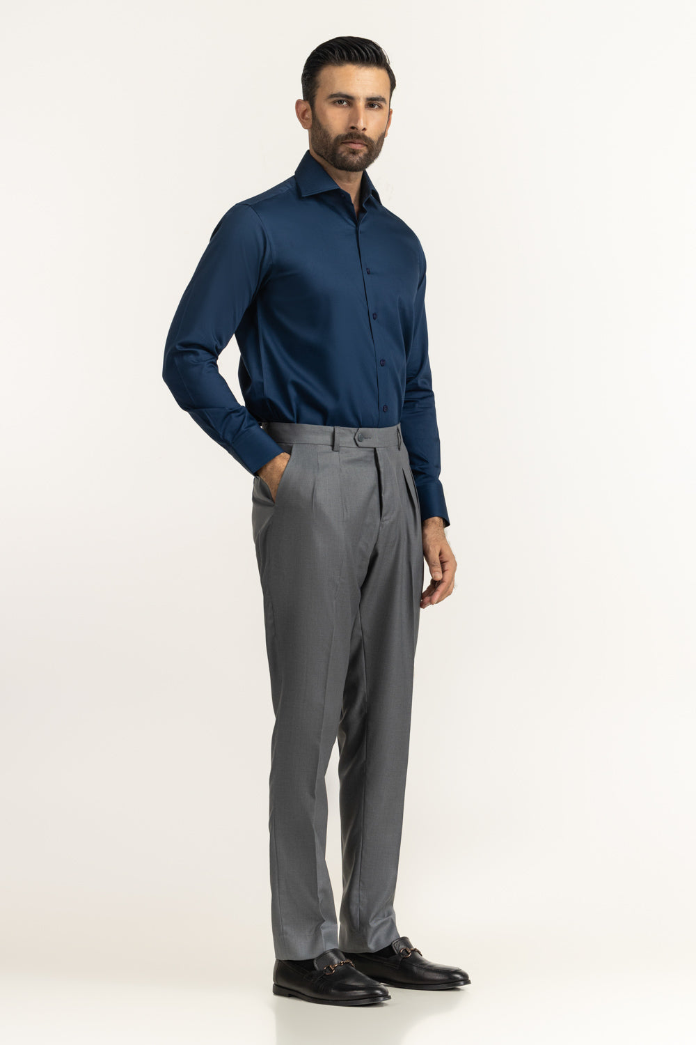 Elevate your formal style with this men’s plain dress shirt, designed for a sharp and contemporary appearance. Tailored in a modern fit, it offers a clean, well-defined silhouette ideal for professional and formal settings. Crafted from 100% cotton and enhanced with a liquid ammonia finish (LA Finish), the fabric delivers a silky sheen, improved durability, and a smooth, refined look. The treatment also enhances softness and helps the shirt retain its shape after wear and wash. Perfect to pair with dress pants or suits, this shirt is a versatile essential for a sleek, confident, and polished formal wardrobe