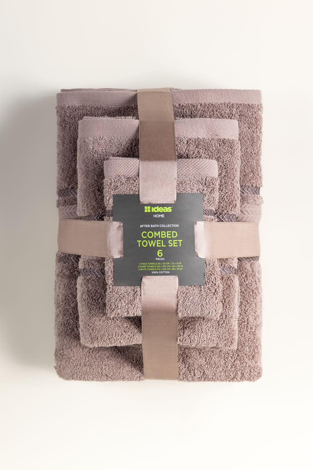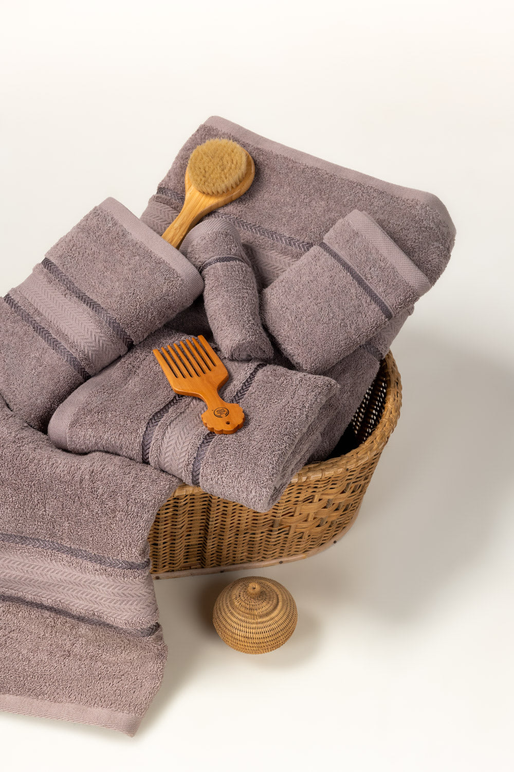 Set consist of 2 face towels, 2 hand towels and 2 bath towels in a beautiful packaging.
