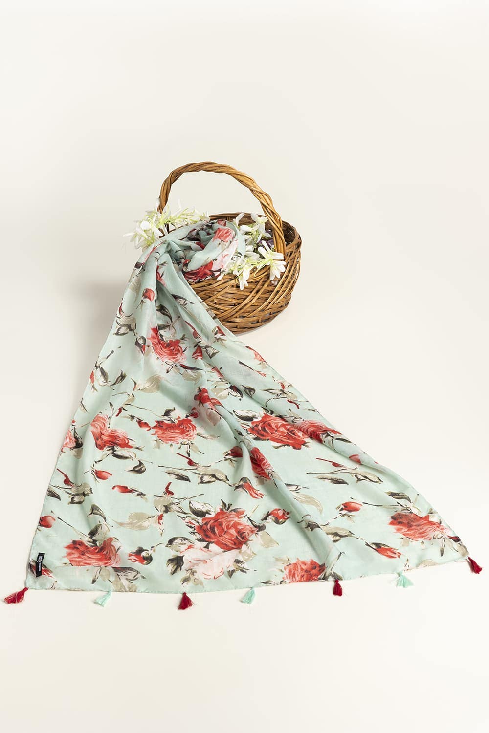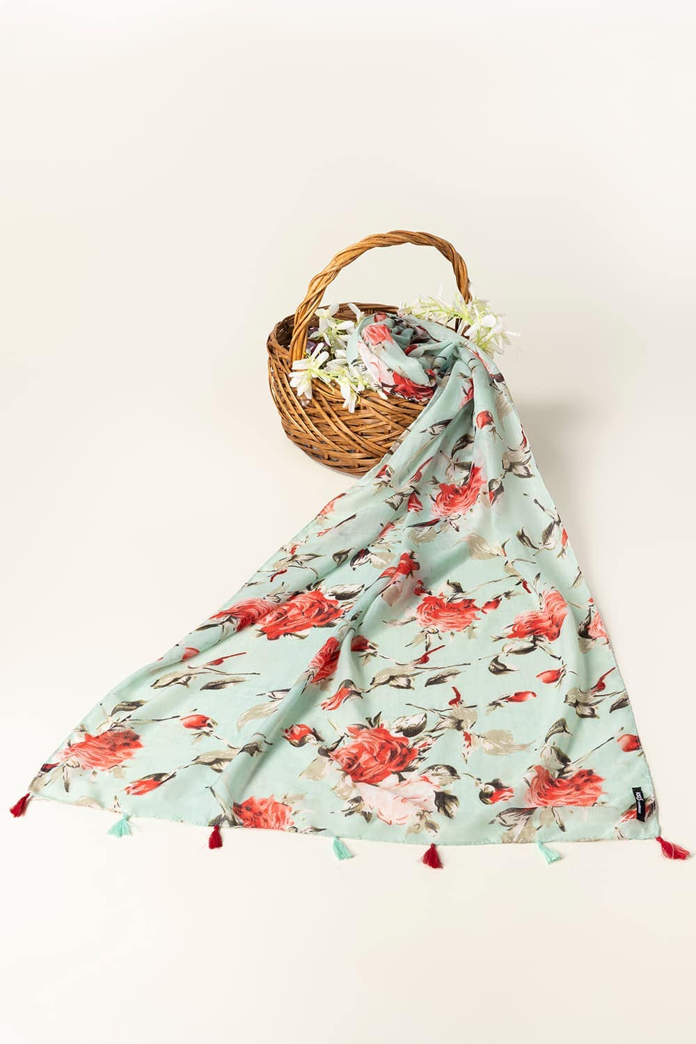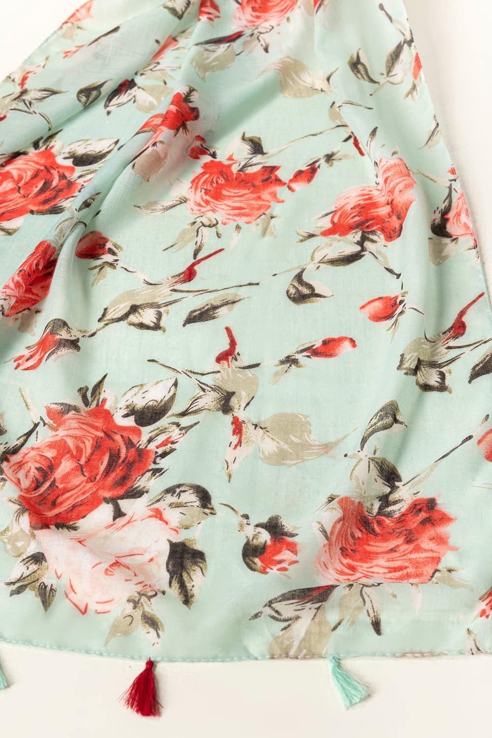 This lovely Scarf is adorned with red and pink roses, offering a delicate and feminine touch. Perfect for spring and summer, it adds elegance to your look.