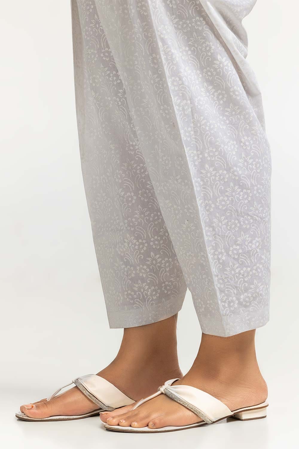 Ready to wear Complete your outfits with this off-white dyed cambric shalwar with beautiful overall screen prints.