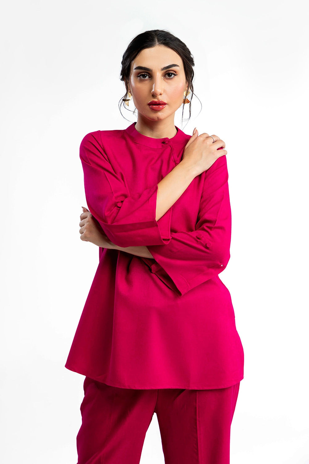 Ready to wear Turn heads with the vibrant Hot Pink Peach Wool Dyed Co-Ord Set. Crafted from soft Peach Wool, this sleek suit features a tailored shirt and flattering straight-leg trousers. Bold, playful, and effortlessly chic, it's perfect for making a statement anywhere you go!