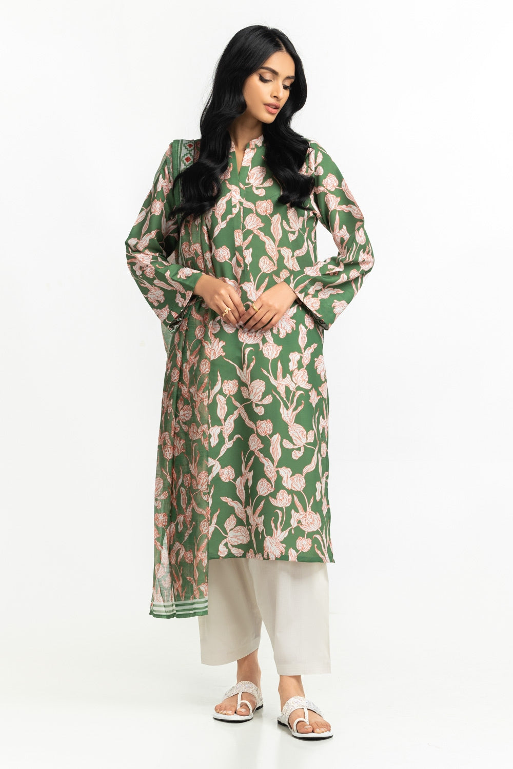 This dupatta with a beautiful floral print matches your outfit effortlessly while exuding a flowy drape that enhance your look of the day.