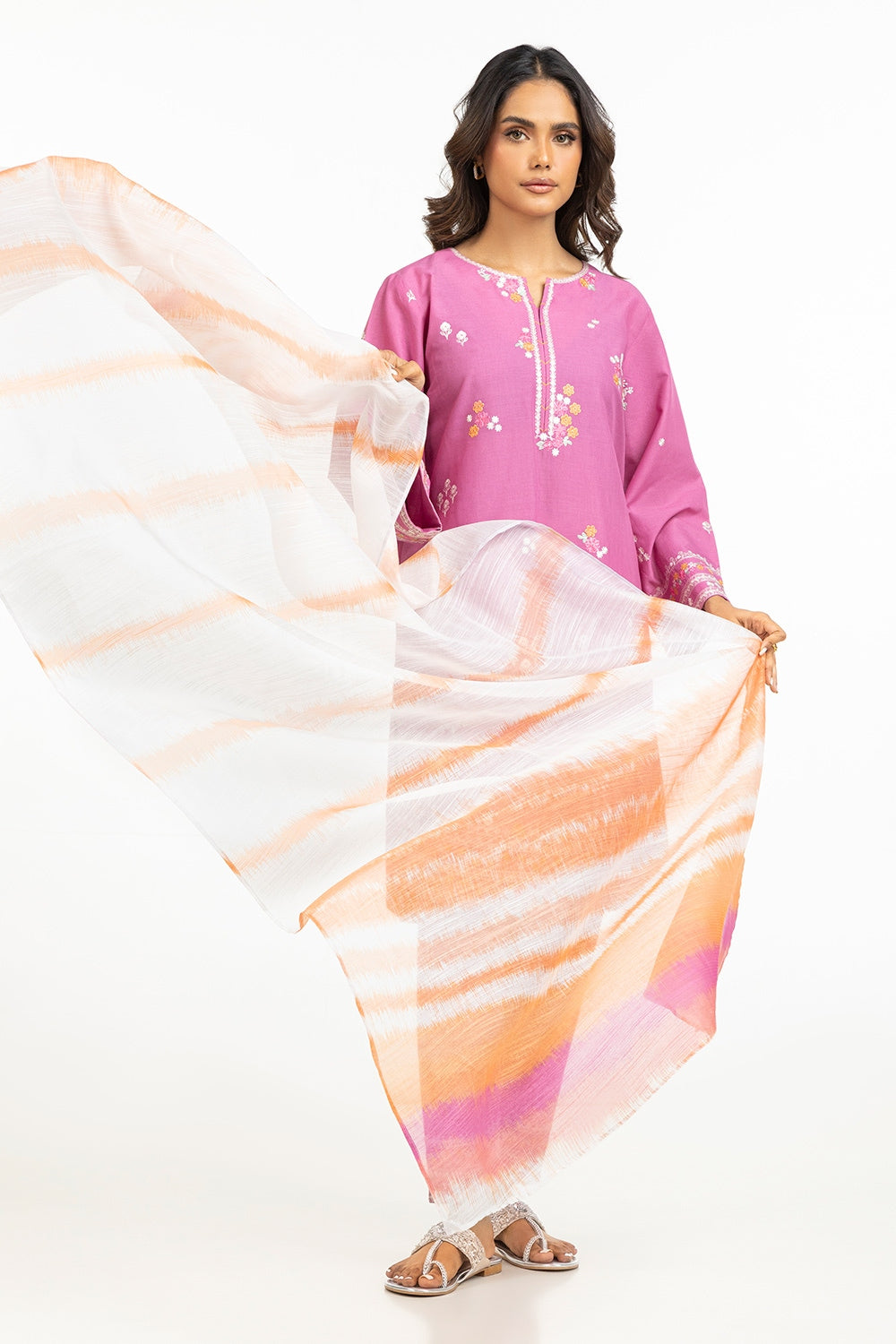 Perfect for warm days, this printed dupatta features a unique assemble of colors, crafted with the breathable tissue silk fabric. This flowing fabric offers a trendy and feminine look, ideal to pair with your summer wear outfit.