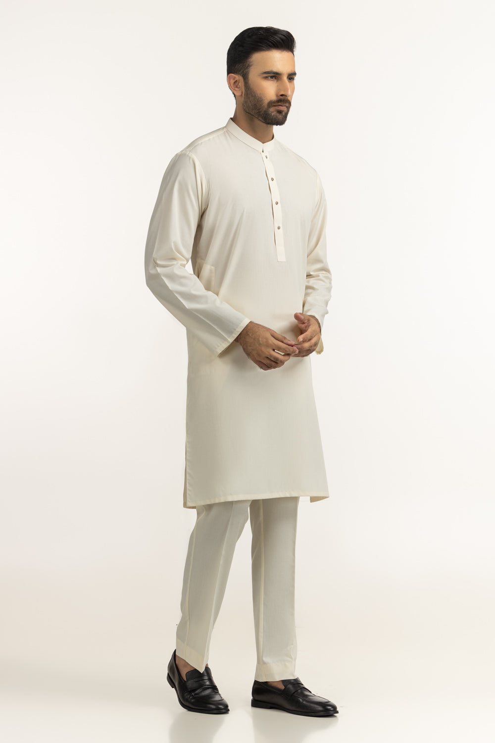 Elevate your everyday ethnic wardrobe with this classic Suit, designed with a sleek band collar and clean straight bottom hem. The structured cuffs add a refined finish, while the tailored silhouette ensures effortless comfort and timeless appeal. Ideal for daily wear and semi-formal gatherings, this ensemble blends traditional craftsmanship with contemporary elegance.