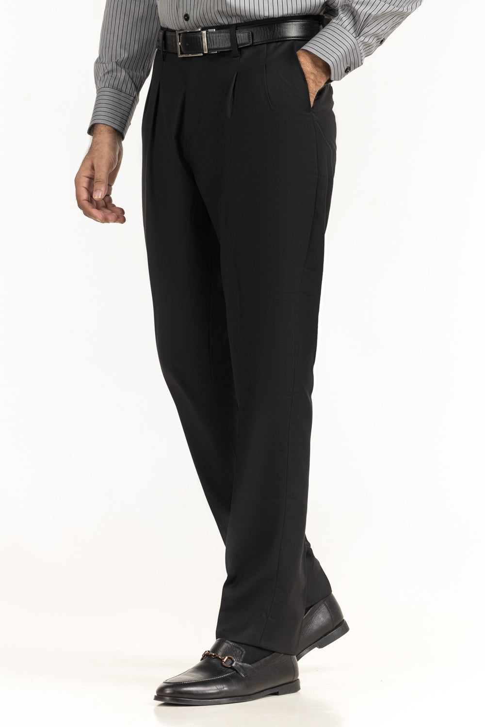 Enhance your formal wardrobe with dress pants designed for a smart and confident look. Featuring a regular fit with front pleats, they offer a classic shape with added comfort, making them suitable for office wear and formal occasions. Made from durable poly–rayon blended fabric, these pants provide a smooth drape, long-lasting wear, and a neat appearance throughout the day. Ideal to pair with formal shirts, blazers, or vests, they are a versatile essential for everyday formal styling.