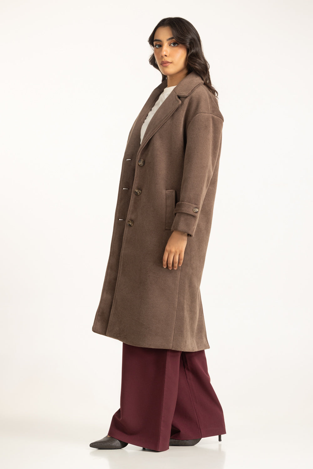 This contemporary overcoat offers regular fit with refined aesthetics. The button-down front and soft-feel fabric add comfort and polish, ideal for transitional layering throughout winter.