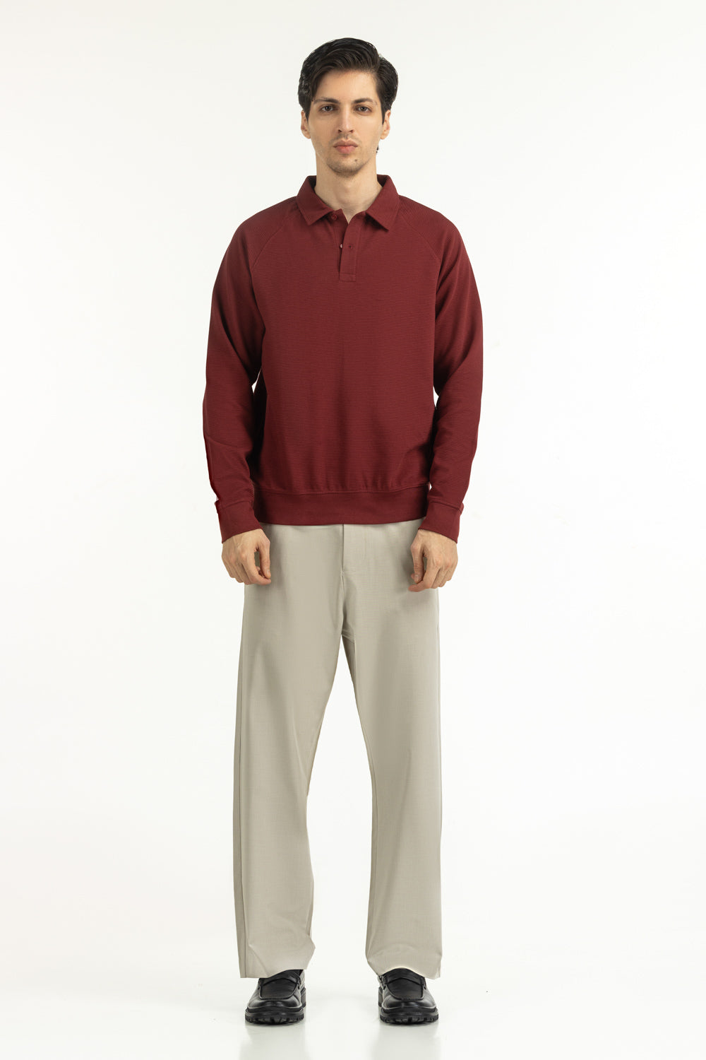 This long-sleeve polo in a striking red hue captures the essence of confident modern dressing. The regular fit ensures comfort and movement, while the button neckline adds polished versatility.