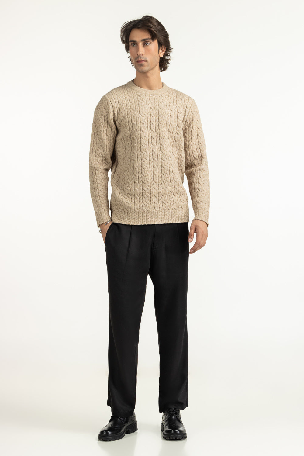 Crafted in a neutral beige tone, this sweater reflects subtle strength in simplicity. Knitted detailing brings texture, while the crew neckline and its regular fit, shapes a clean finish with a tailored appeal all day long.