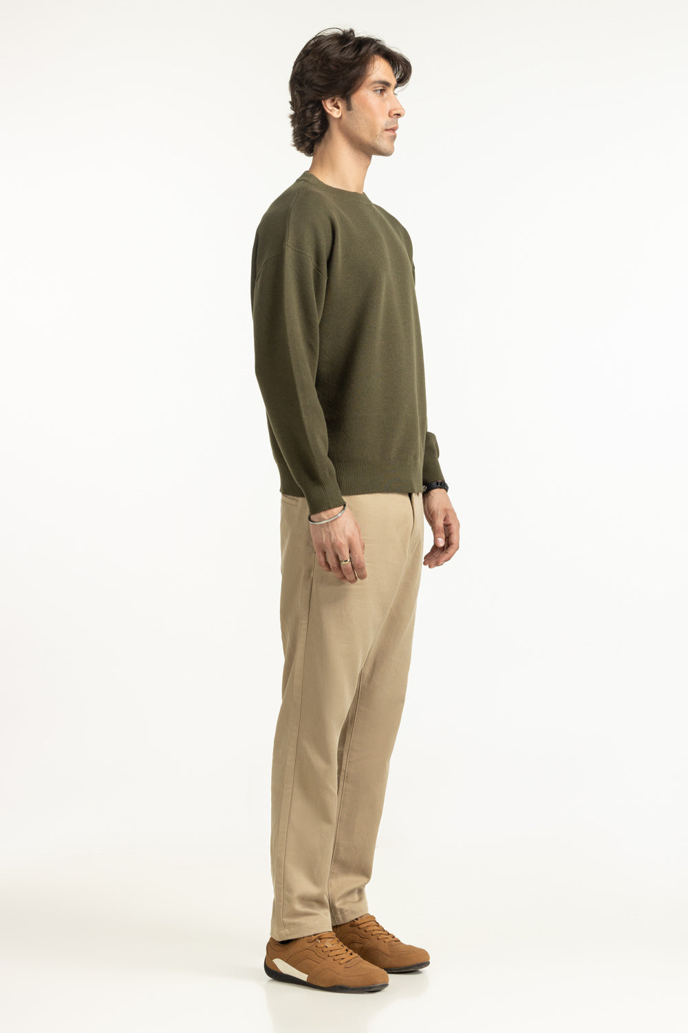 With an earthy color palette, this sweater offers grounded yet stylish winter aesthetics. The crew neckline frames the look with simplicity, while the regular fit keeps comfort at the forefront. Its lightweight warmth meets refined craftsmanship in every stitch, that speaks with a youthful and understated class.