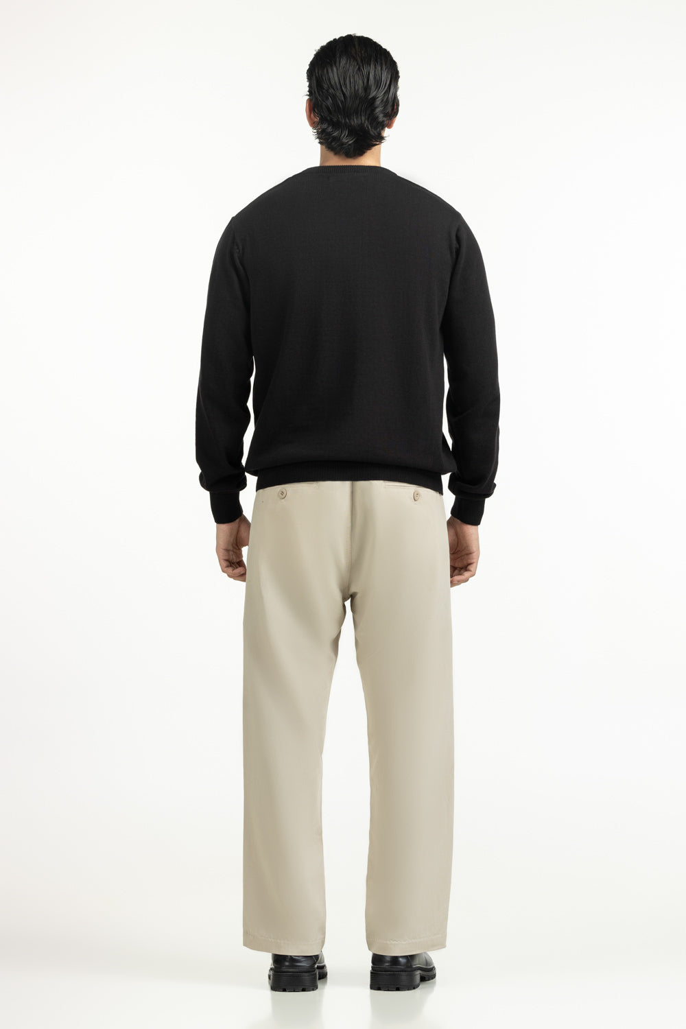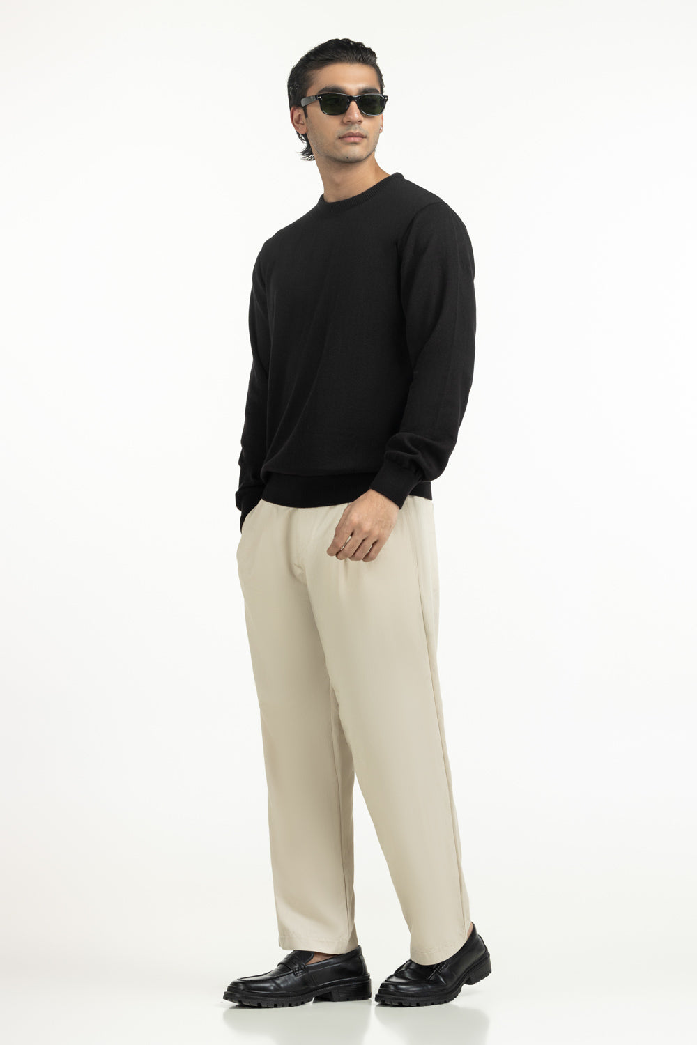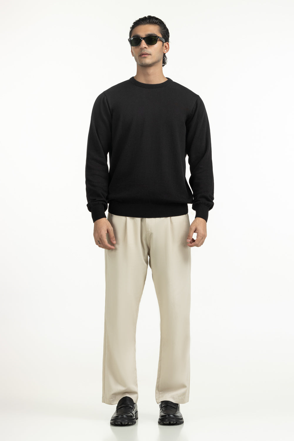 A classic in black, this crew neck sweater is knitted from 100% cotton for breathable warmth and comfort. The regular fit offers a polished silhouette while allowing effortless movement. Its smooth knit texture adds a premium touch, making it adaptable for both casual and formal layering.