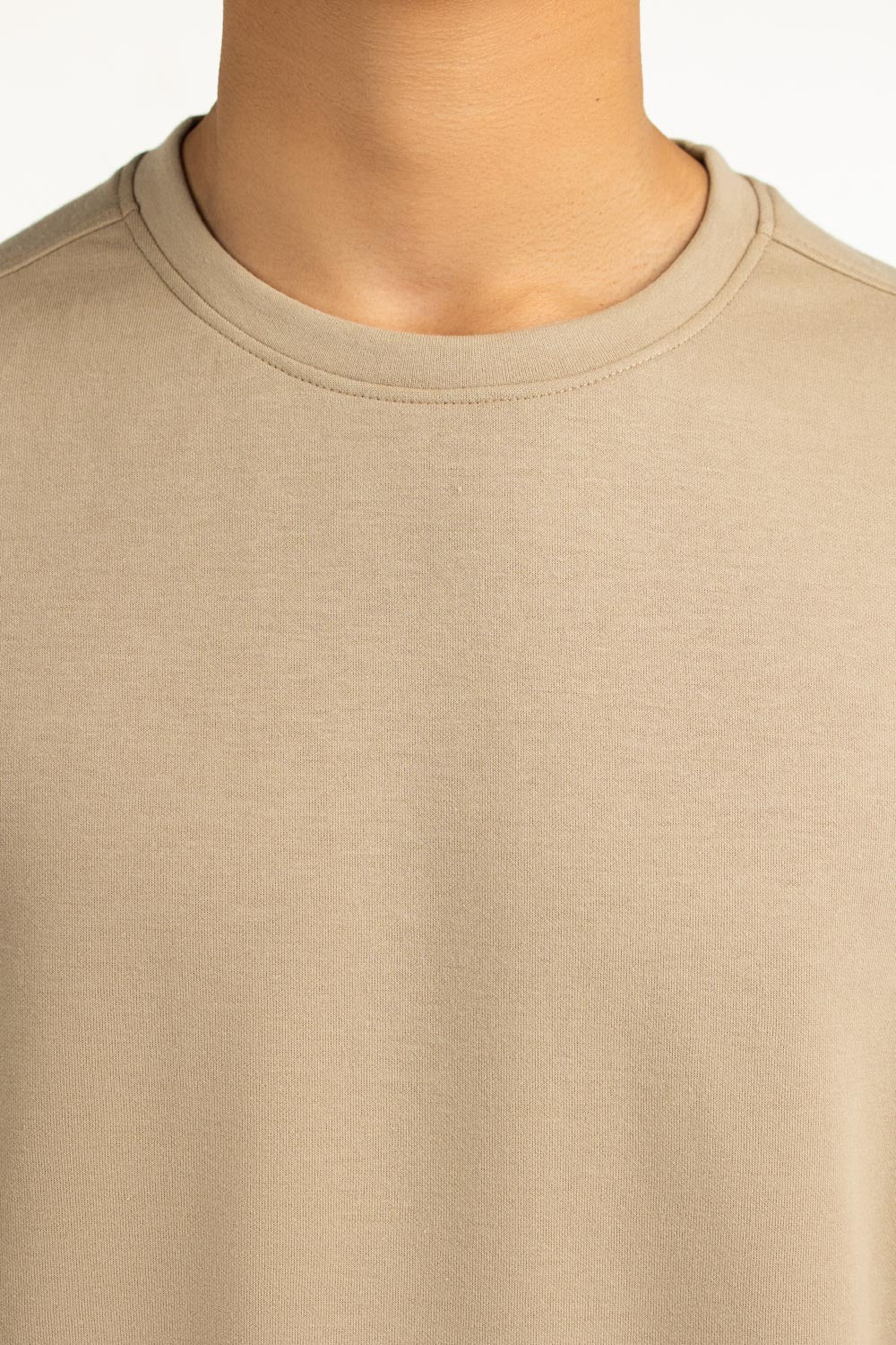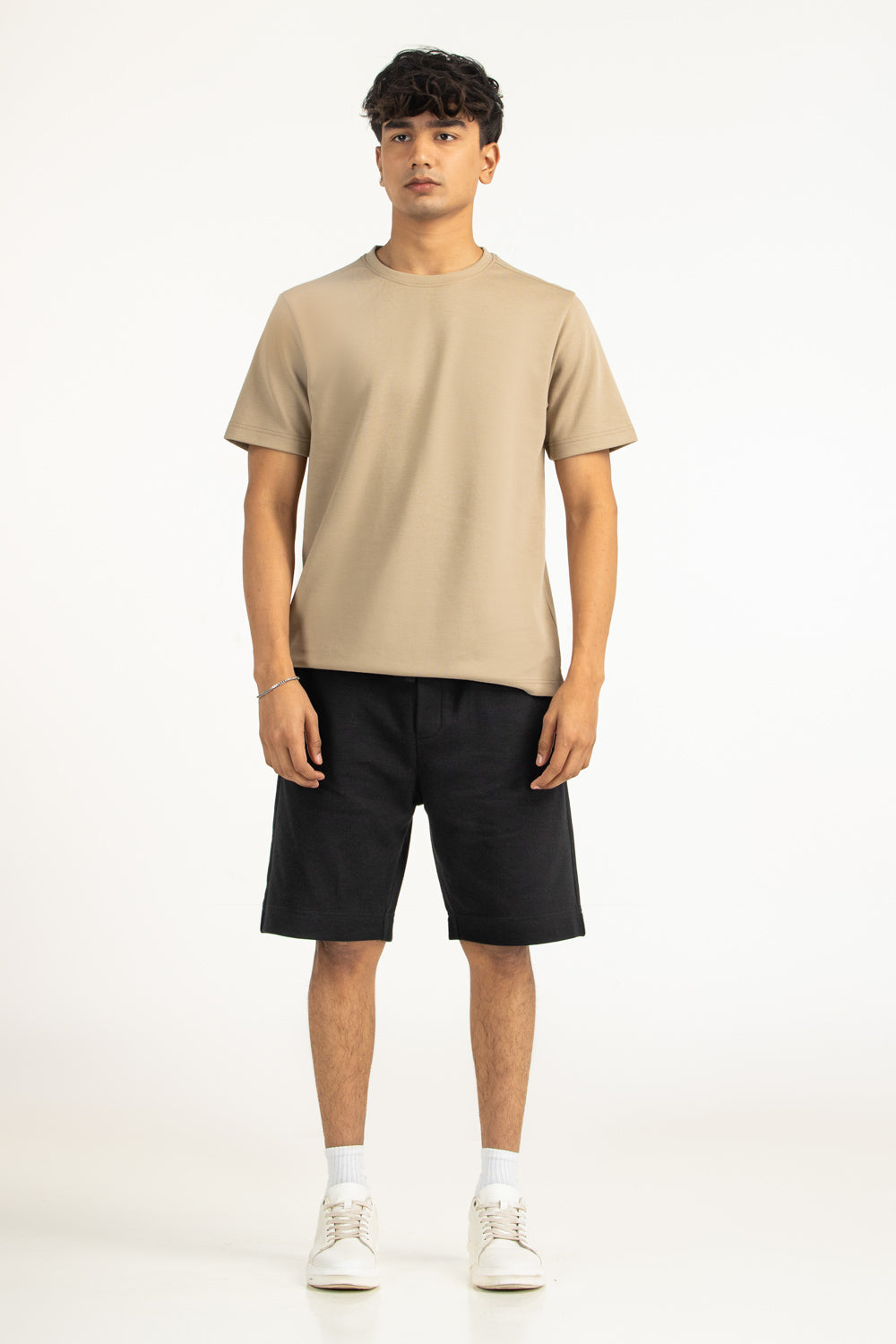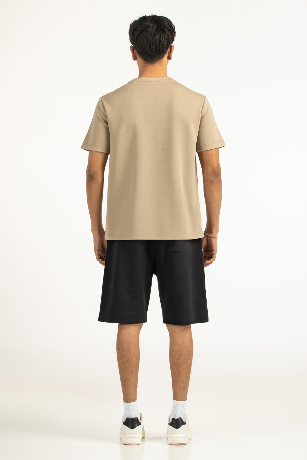 Crafted from durable cotton polyester blended fabric, this regular fit tee offers breathable comfort with structured wear. The subtle trench color positioned within the design tone enhances its modern casual styling.