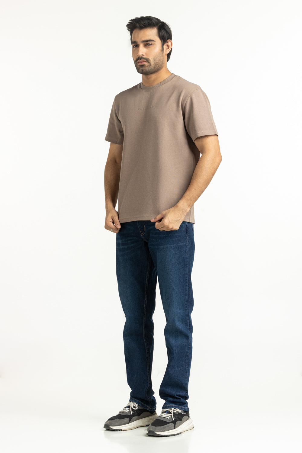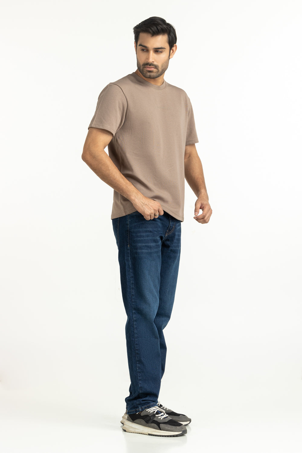 Designed for comfort and ease, this plain T-shirt in a relaxed fit and earthy tone, pairs confidence with simplicity. A timeless addition to your casual wardrobe.
