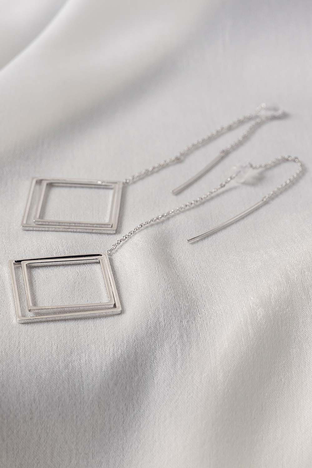 A trendy pair of metallic Threader Earrings with a square at the end gives you a minimalist Silver look. Perfect for those who appreciate elegance with a modern twist, these Threader Earrings are sure to add a touch of sophistication to your jewelry collection.