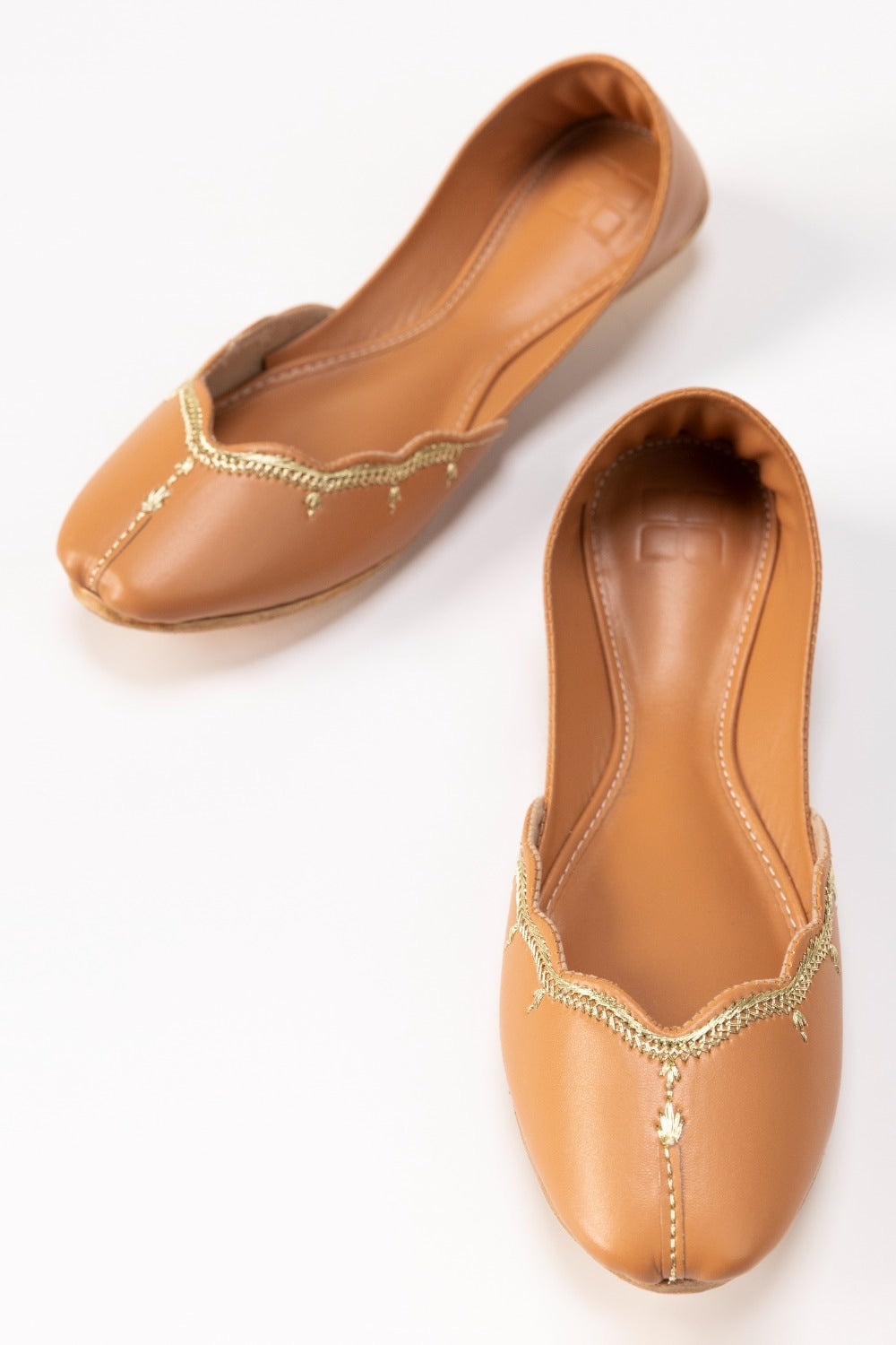 This chic leather pair in a soft Tan color features minimalistembroidery, an ultra-sleek finish and a comfortable insole. The perfect slip-onfor an amped up eastern look.