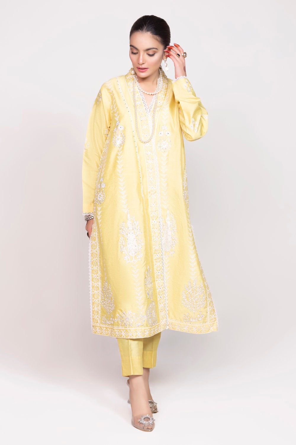 Tehwaar Raw Silk Block Print Shirt And Trouser WGK-RSS-SP-2222