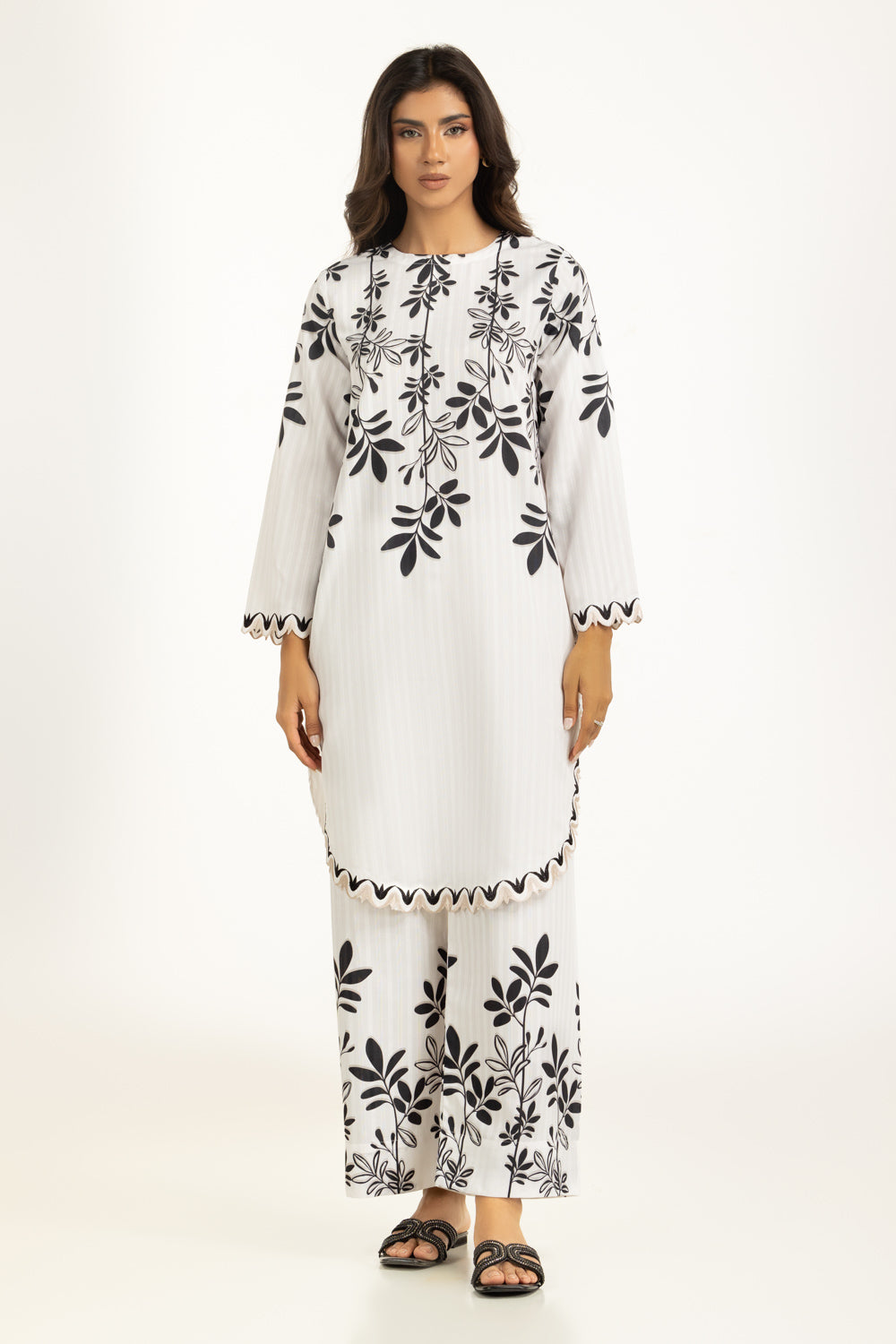 Designed in a premium textured dobby fabric, this printed monochrome co-ord set offers comfort, movement, and a crisp finish. The regular fit ensures a relaxed drape without losing shape. A breezy outfit suited for casual winter days and easy routines.