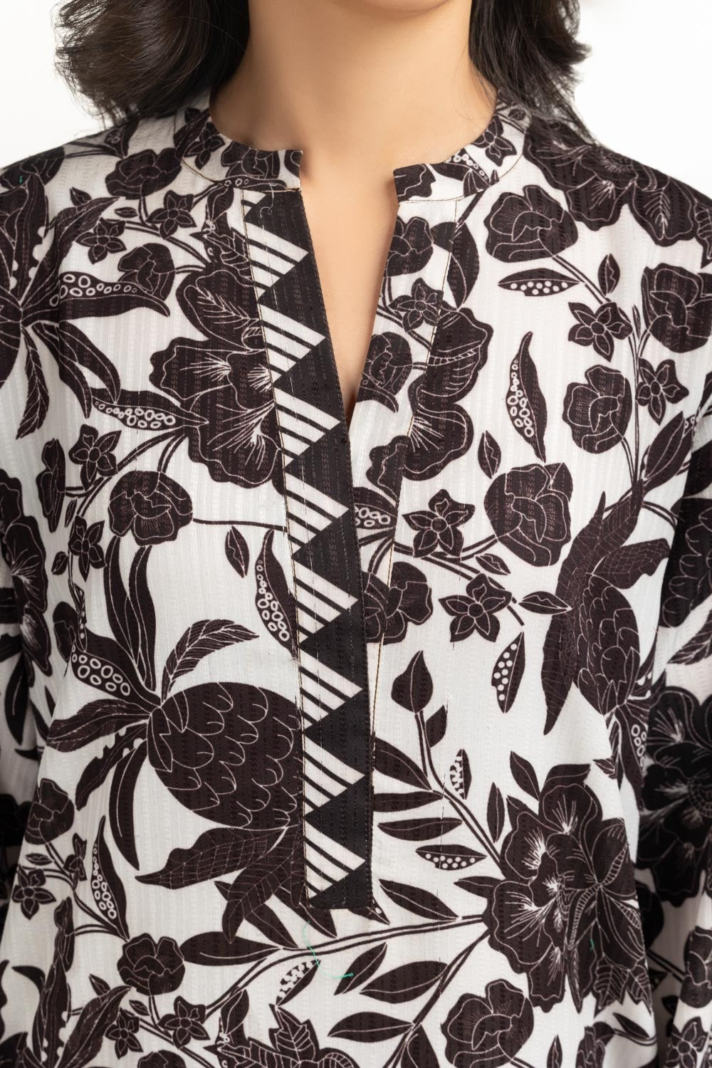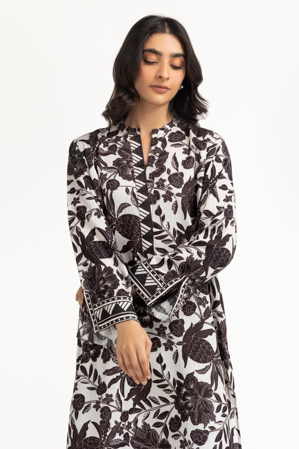Details: Printed Shirt featuring Ben-Collar with a V-Neckline and Slit sleeves.