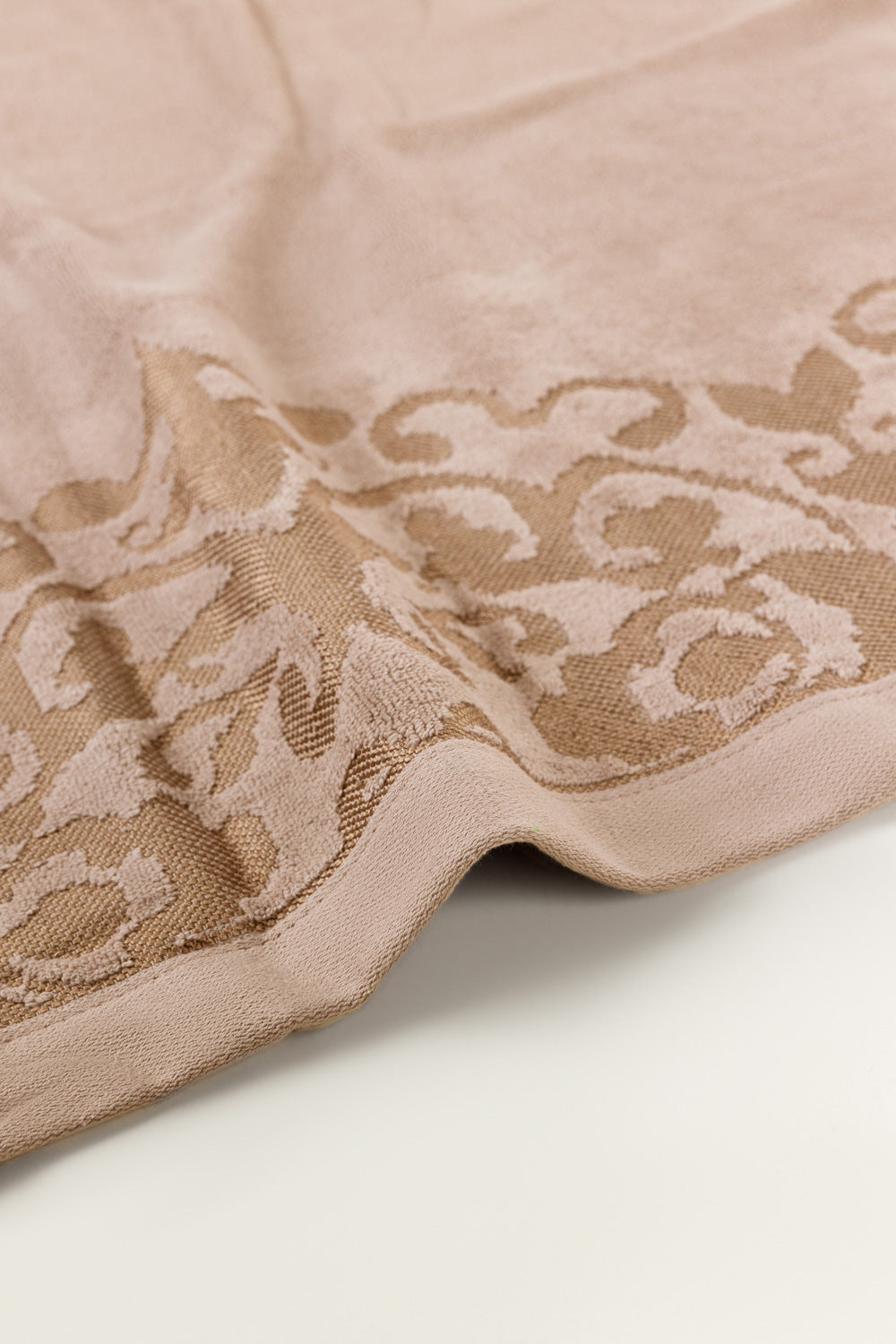 Jacquard towels are yarn-dyed terry towels woven on a special hook with an attachment allowing patterns to be woven into the terry pile. Jacquard weaves also have different heights of terry loop and intricate color designs. A jacquard design will appear on both the back and face of the towel.